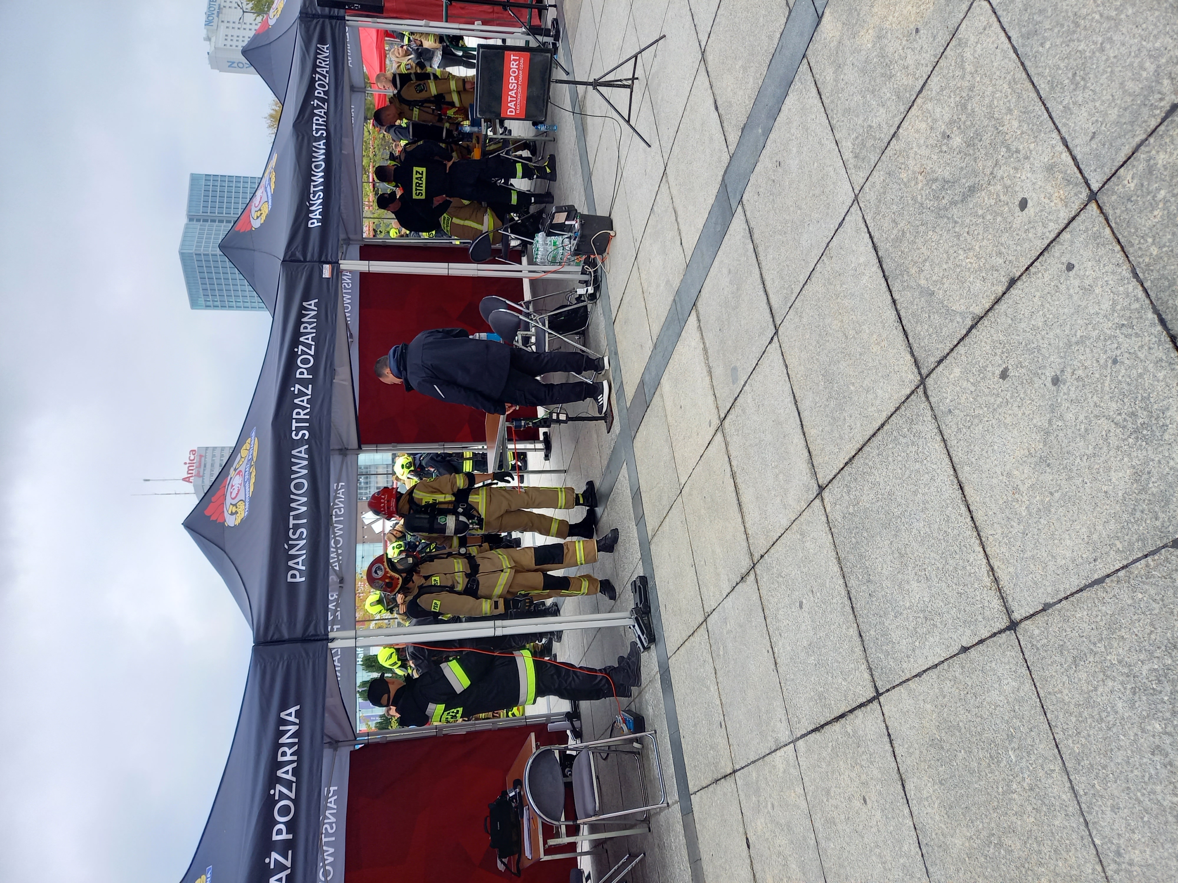Zawody polegały na biegu dwuosobowych drużyn z Placu Defilad na 30 piętro Pałacu Kultury i Nauki w pełnym umundurowaniu, z maską oraz aparatem ochrony dróg oddechowych. Zawodnicy mieli do pokonania około 800 schodów z metą na wysokości 114 metrów na poziomie tarasu widokowego PKIN. Strażacy z tut. komendy rywalizowali wspólnie z innymi zawodnikami zajmując odpowiednio: