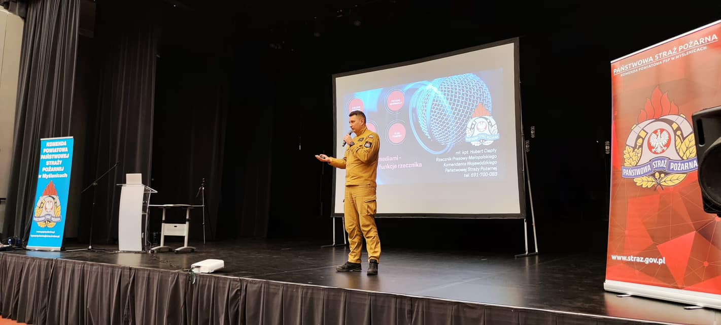 - mł. kpt. Hubert Ciepły - Rzecznik Prasowy Małopolskiego Komendanta Wojewódzkiego PSP, który przedstawił współpracę Jednostek Ochrony Przeciwpożarowej z mediami.