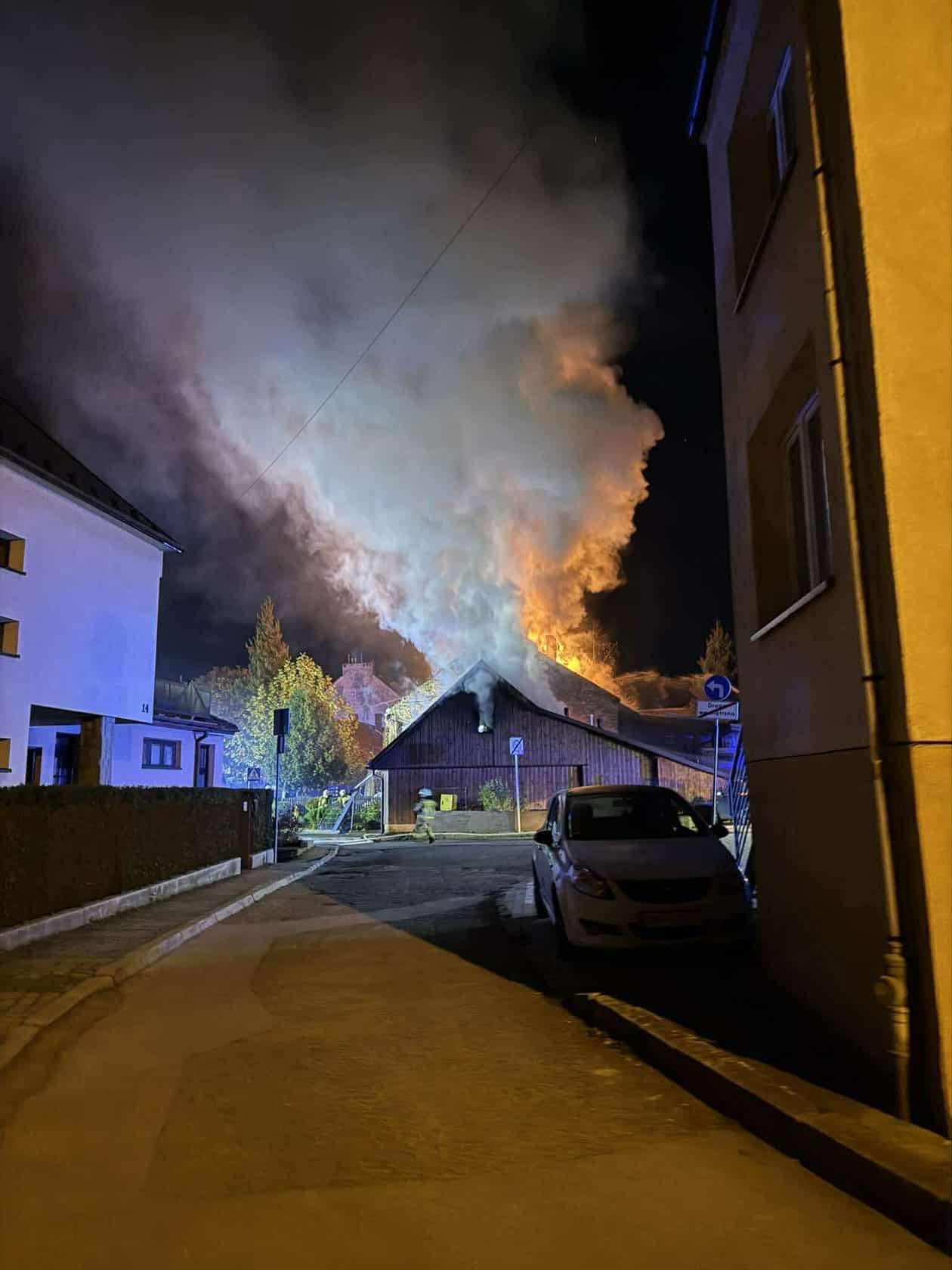 Nocny pożar budynków w Myślenicach