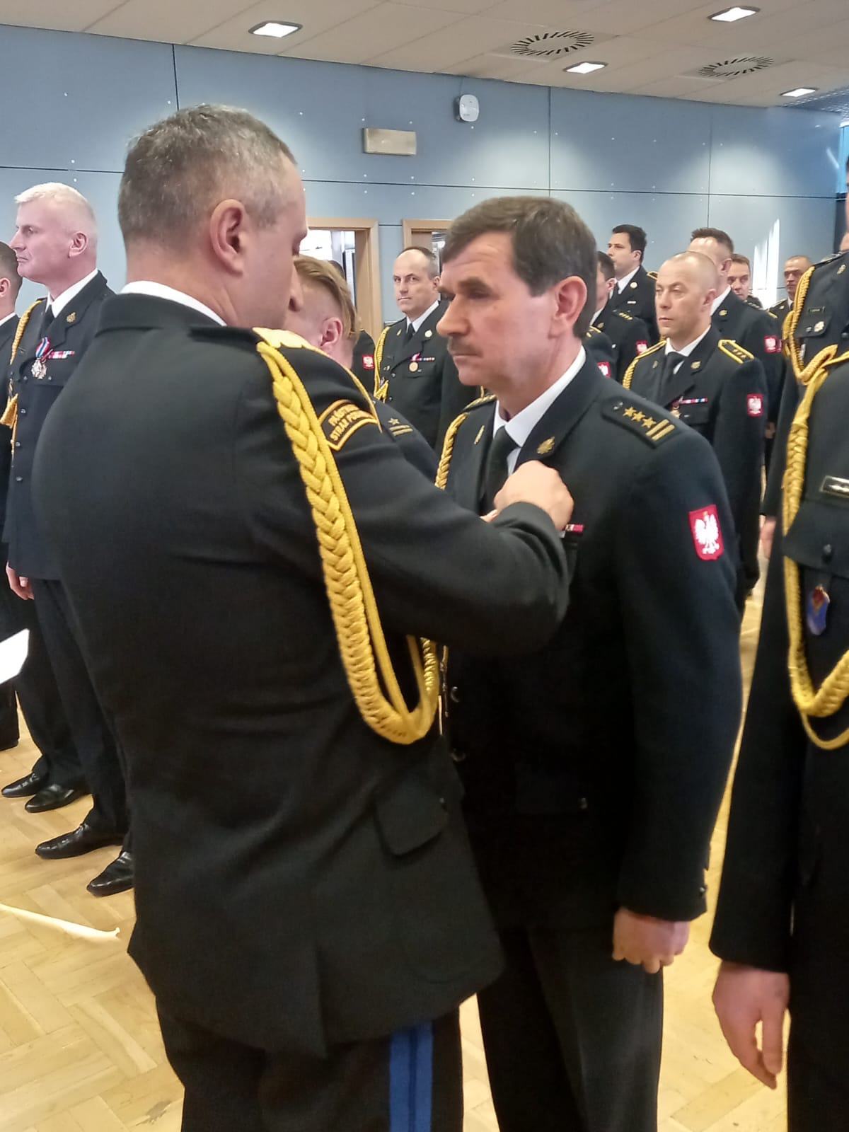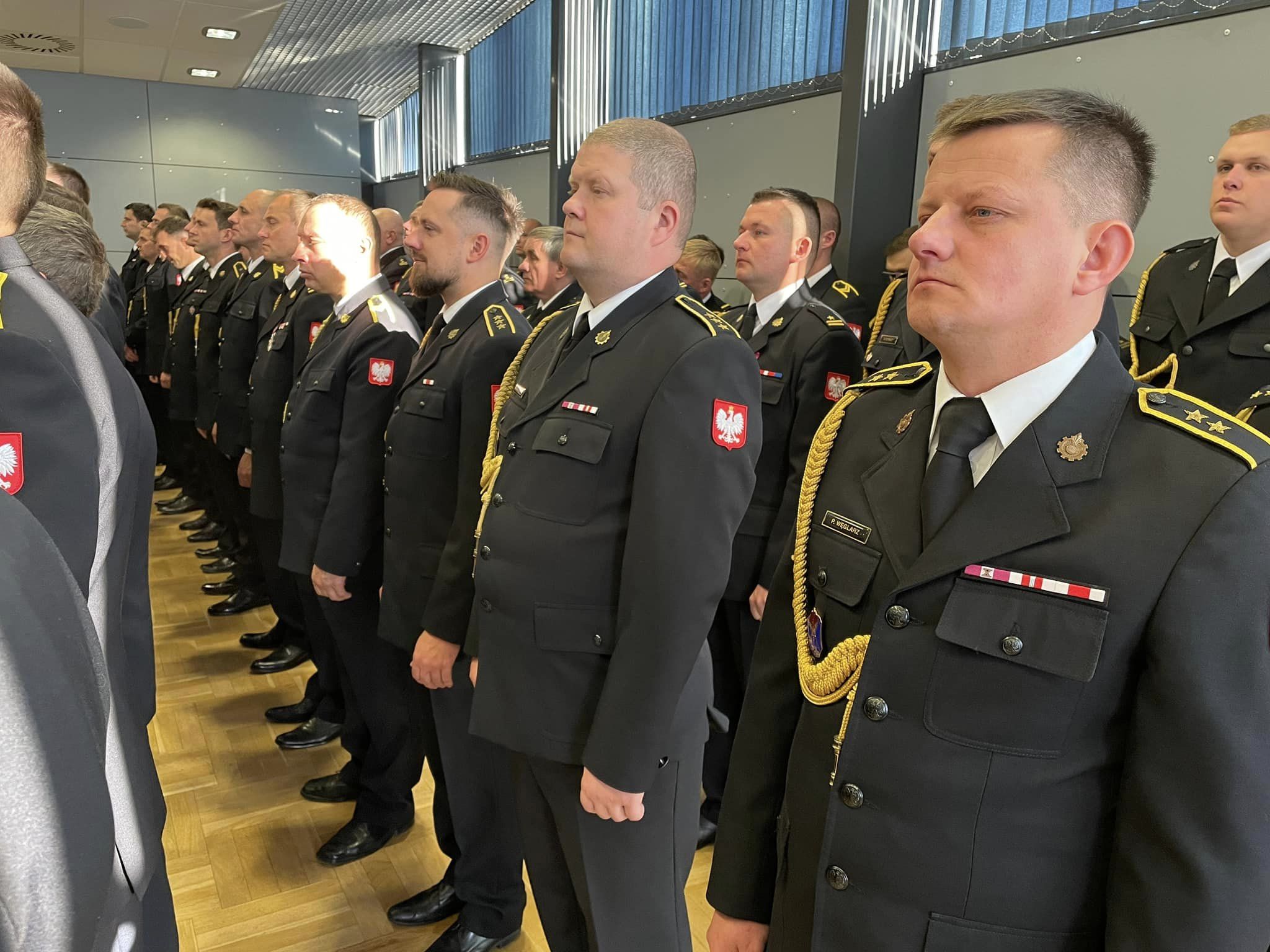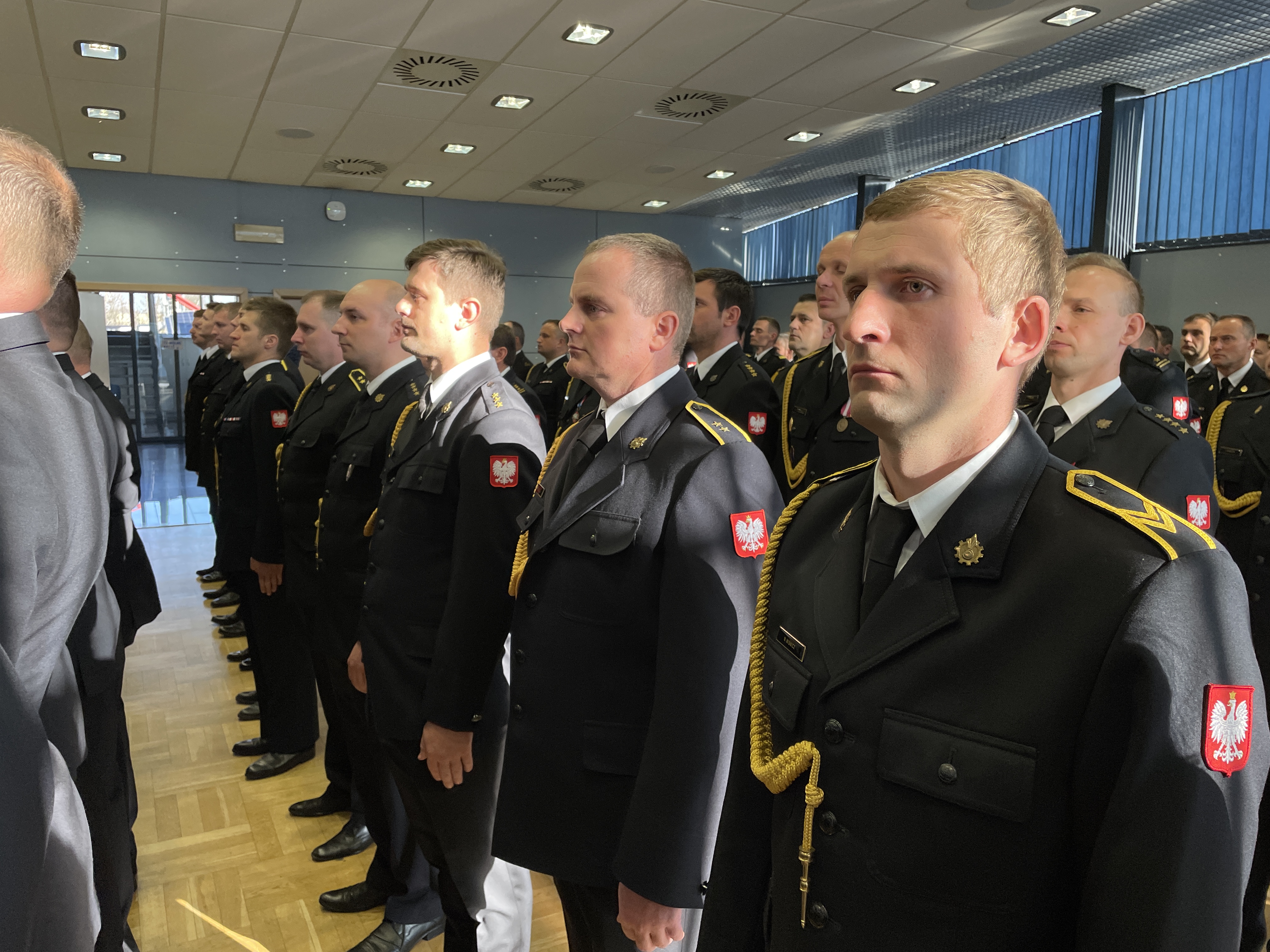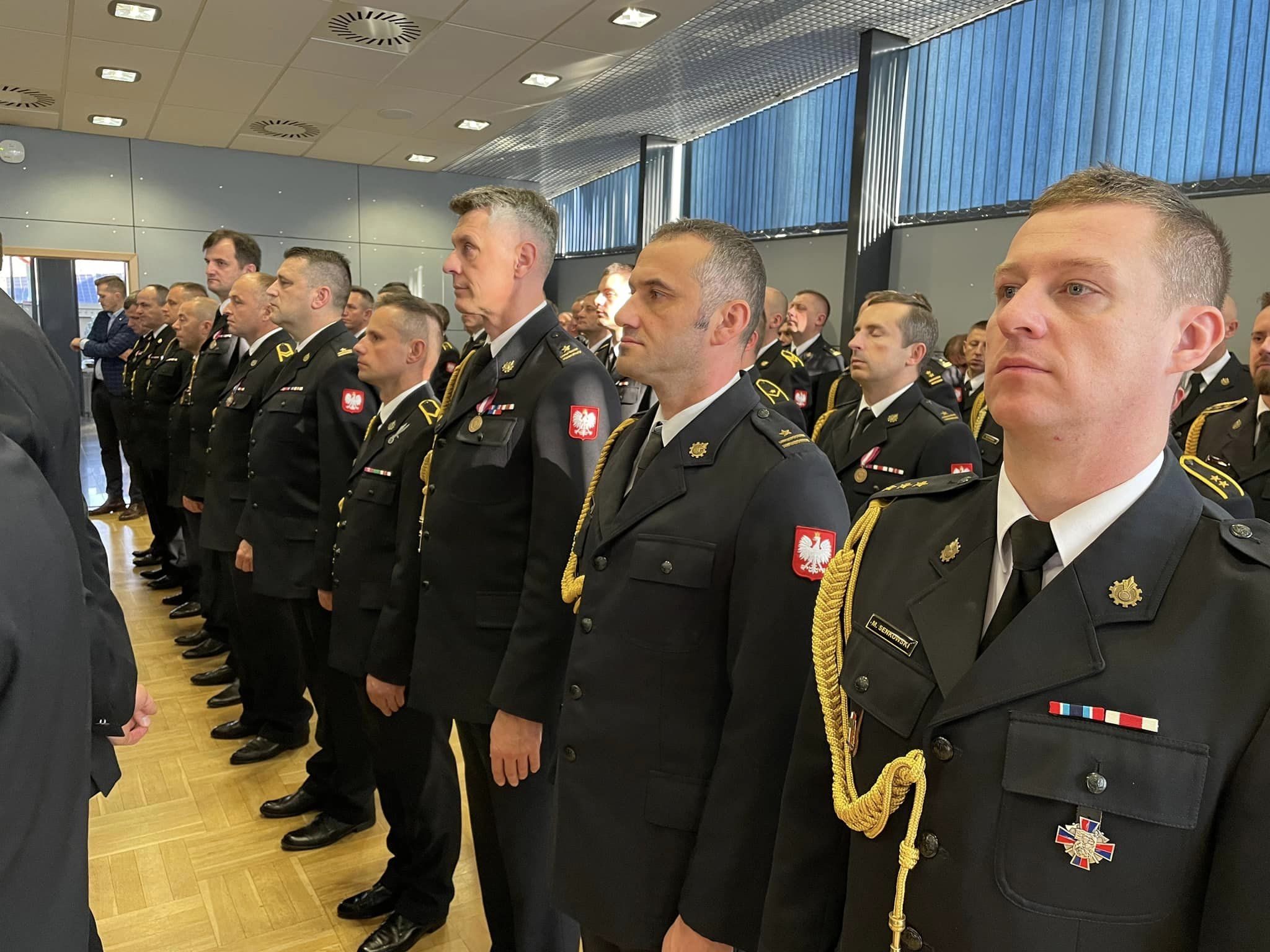 Komendant Powiatowy PSP w Myślenicach st. bryg. Sławomir Kaganek, wraz z zastępcą st. bryg. Wojciechem Murzynem oraz funkcjonariuszami myślenickiej komendy, wzięli udział w uroczystej zbiórce, która odbyła się 24 listopada 2023 roku w budynku Komendy Wojewódzkiej PSP w Krakowie.