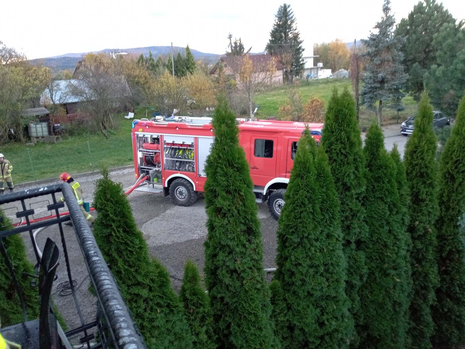 W dniu 22 października o godzinie 6.45 do SKKP PSP w Myślenicach wpłynęło zgłoszenie o pożarze mieszkania w budynku wielorodzinnym zlokalizowanym w miejscowości Dobczyce. Przed przyjazdem zastępów straży pożarnej z obiektu ewakuowało się 6 osób. Pierwsze przybyłe na miejsce zastępy OSP Dobczyce i OSP Kornatka zabezpieczyły teren akcji, podały dwa prądy gaśnicze wody na miejsce pożaru. Zastępy PSP po dojeździe włączyły się w działania zmierzające do całkowitego zlikwidowania zagrożenia. Przystąpiono do prac rozbiórkowych poszycia dachowego, kontroli kamerą termowizyjną obiektu w celu wykluczenia zarzewi ognia. Następnie przewietrzono i sprawdzono na obecność CO pomieszczenia całego budynku nie stwierdzając zagrożenia. Ze względu na palące się między innymi elementy z tworzyw sztucznych strażacy pracowali w sprzęcie ochrony dróg oddechowych wykorzystując w działaniach posiadany sprzęt specjalistyczny.