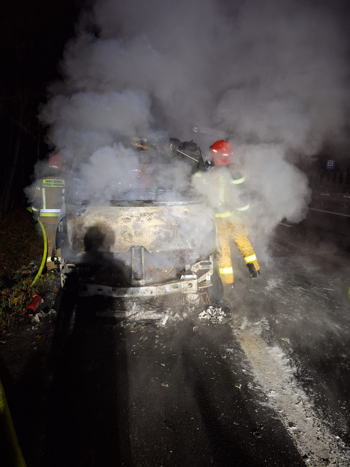We wtorek, 4 listopada 2025 roku, około godziny 18:30, do Stanowiska Kierowania Komendanta Powiatowego PSP w Myślenicach wpłynęło zgłoszenie o pożarze samochodu dostawczego na drodze krajowej nr 7 w miejscowości Głogoczów.