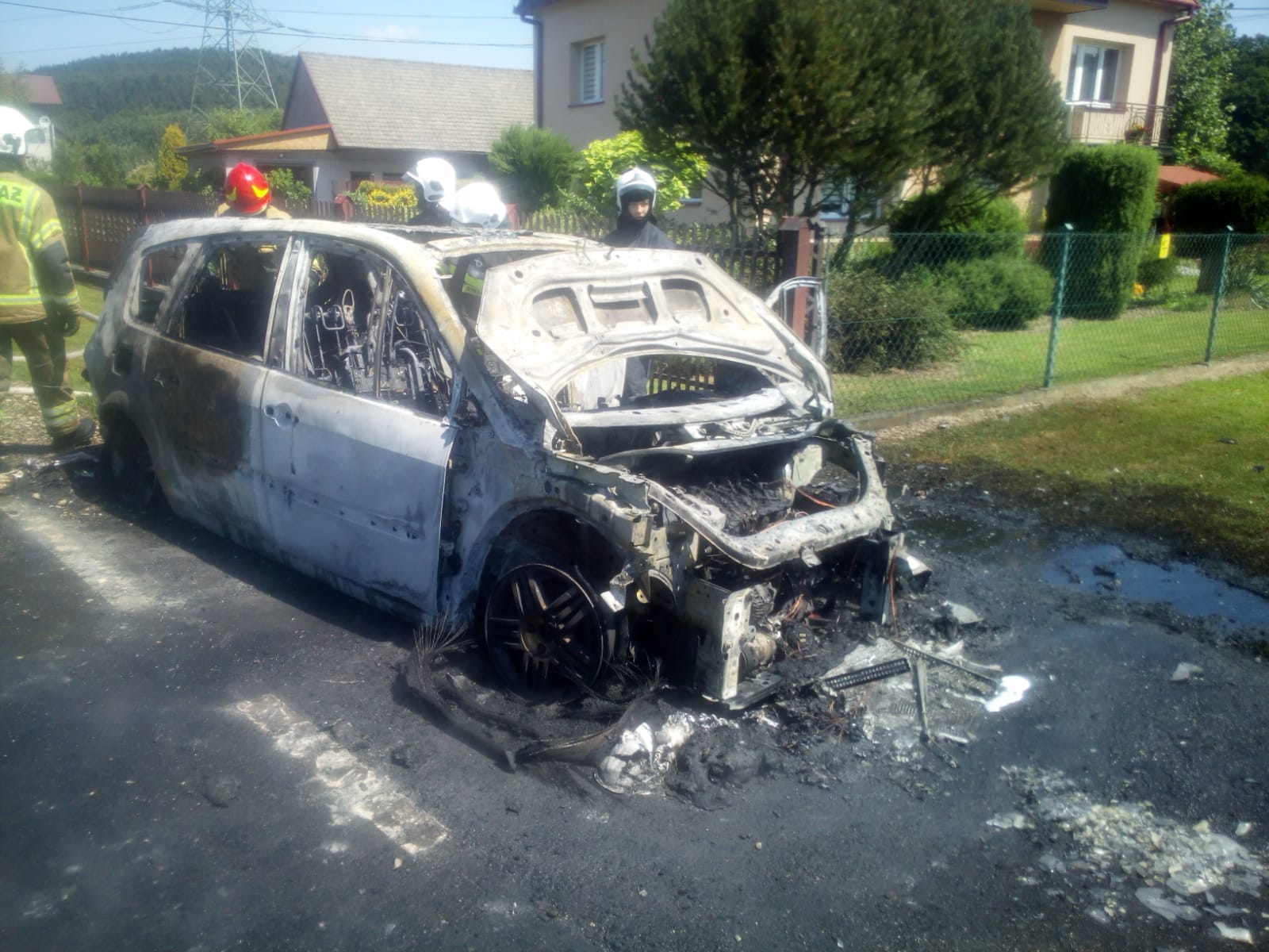 Kolejny raz syreny alarmowe na terenie gminy Dobczyce w dniu 30 czerwca „zawyły” o godzinie 10.50. Dyżurny operacyjny SKKP PSP w Myślenicach zadysponował zastęp z JRG Myślenice oraz uruchomił jednostki OSP Dobczyce, OSP Rudnik do pożaru samochodu osobowego mającego miejsce w Rudniku na drodze gminnej. Strażacy po przybyciu na miejsce podjęli akcje gaśniczą wykorzystując prąd wody, którym skutecznie ugasili ogień. Pojazd jednakże uległ całkowitemu spaleniu.