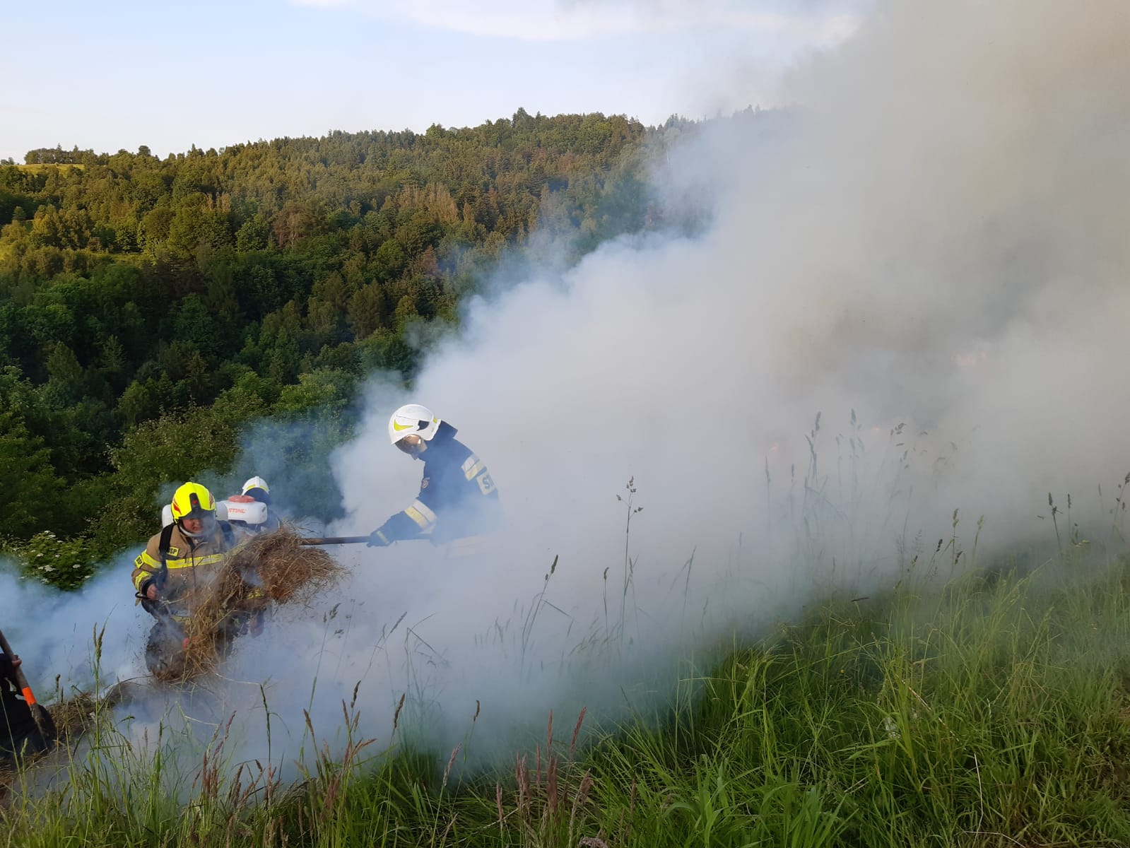 Pożar siana w trudno dostępnym terenie