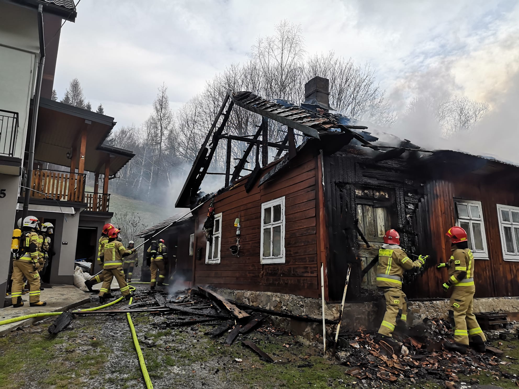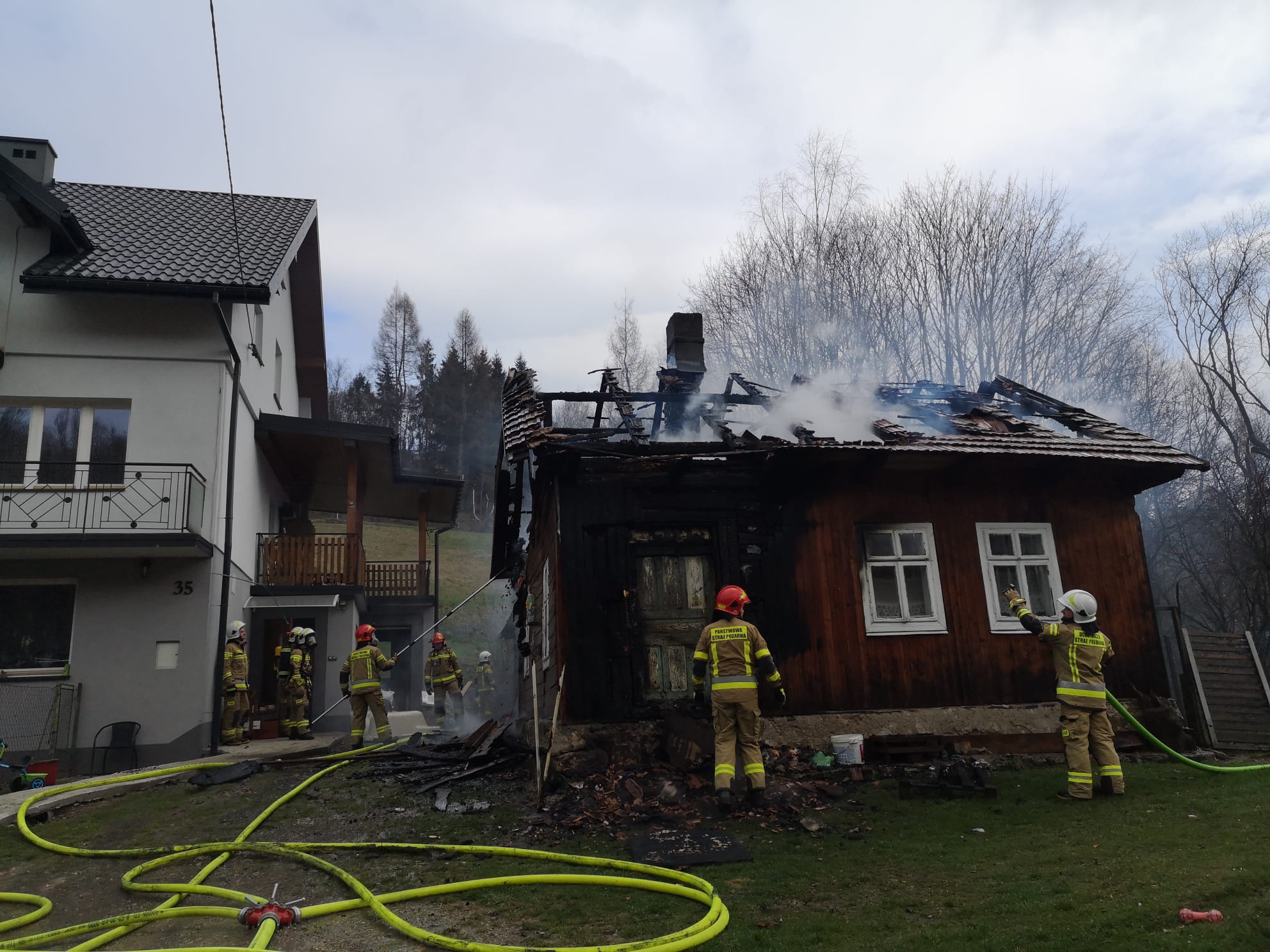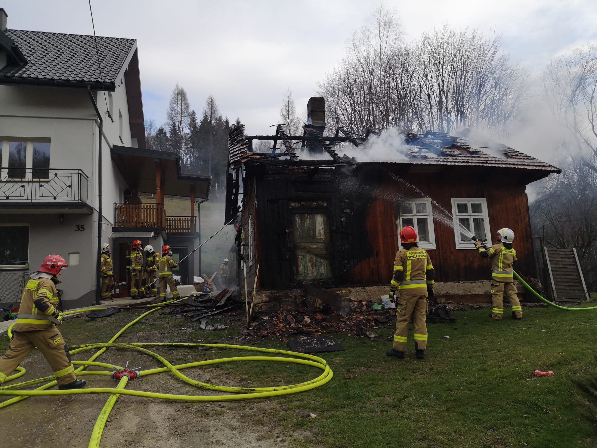 W niedzielny poranek 26 marca br. strażacy walczyli z pożarem drewnianego budynku w m. Poręba. Po przybyciu na miejsce jednostek ochrony przeciwpożarowej stwierdzono, że poddasze drewnianego budynku jest objęte ogniem oraz otrzymano informację, o braku obecności osób wewnątrz. Strażacy pracując w aparatach ochrony dróg oddechowych ugasili pożar przy użyciu czterech prądów gaśniczych w natarciu. Z powodu bliskiej odległości budynku mieszkalnego podawano również jeden prąd wody w obronie uniemożliwiając rozprzestrzenienie się pożaru. W celu wyeliminowania zarzewi ognia dokonano rozbiórki nadpalonych elementów konstrukcji oraz wyposażenia. W działaniach udział brały jednostki JRG Myślenice oraz OSP Poręba, OSP Zasań, OSP Droginia, OSP Trzemeśnia.