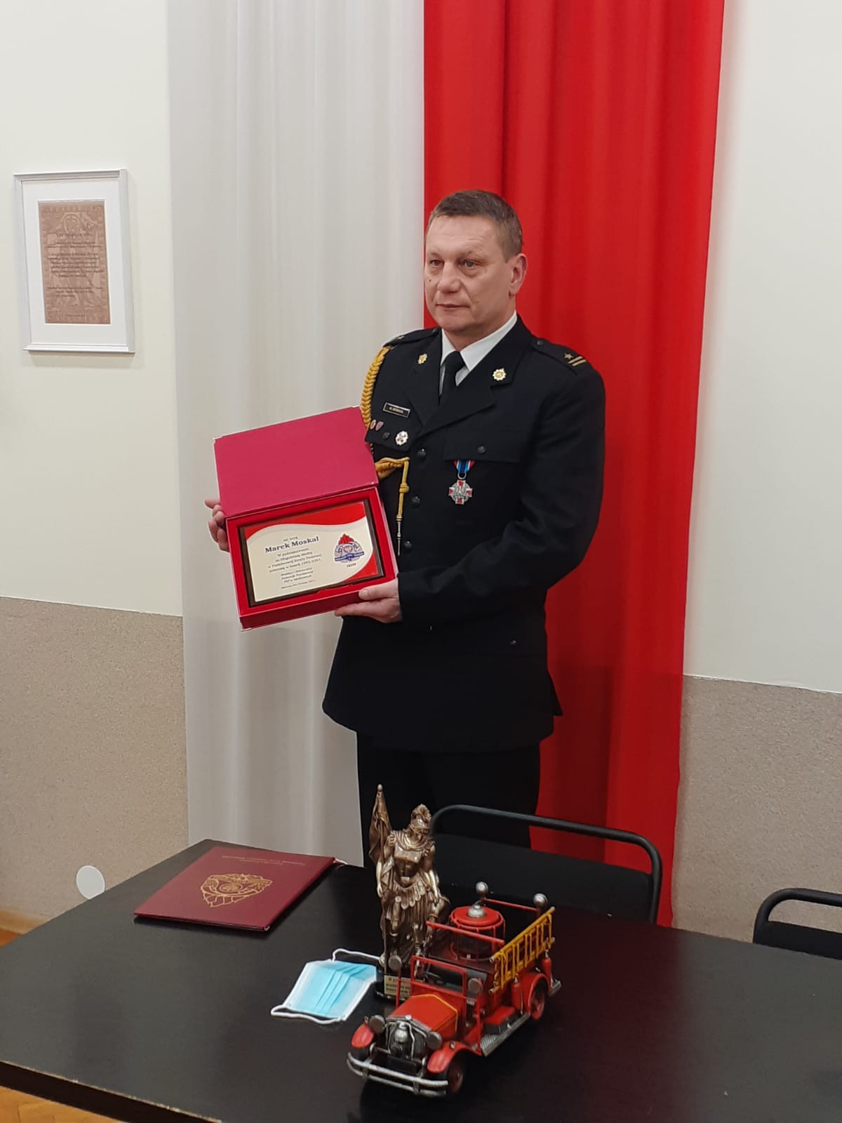 Ze służbą w Komendzie Powiatowej Państwowej Straży Pożarnej w Myślenicach pożegnał się przechodząc na zaopatrzenie emerytalne Zastępca Naczelnika Wydziału Operacyjnego mł. bryg. Marek Moskal. Podczas skromnego pożegnania związanego z okresem pandemii Komendant Powiatowy st. bryg. Sławomir Kaganek podziękował za długoletnią służbę na terenie Ziemi Myślenickiej. Była to również okazja do wspomnień jak wyglądała służba w minionych latach, a jak to wygląda obecnie. Życzymy mł. bryg. w st. spocz. Markowi Moskal wszystkiego najlepszego na „Nowej Drodze Życia”, rozwoju pasji na które brakowało czasu podczas pracy zawodowej.