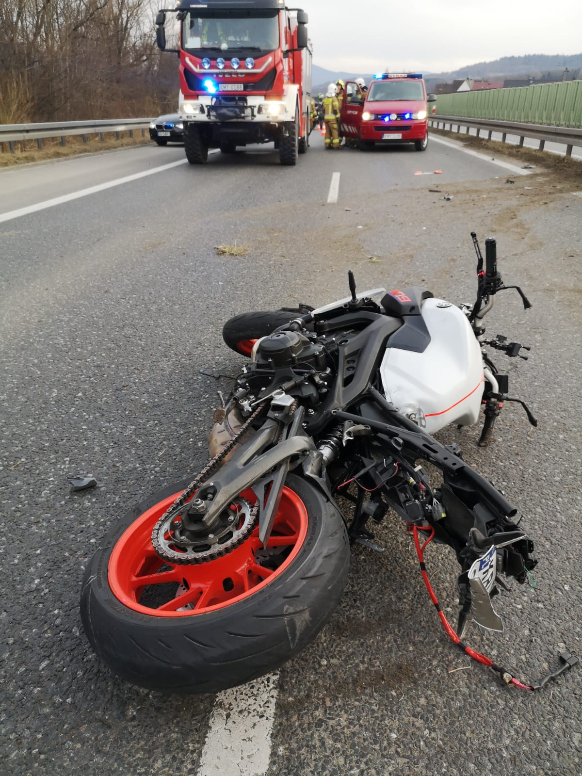 Wypadek motocyklu z samochodem osobym w Stróży, w którym poszkodowana została jedna osoba.