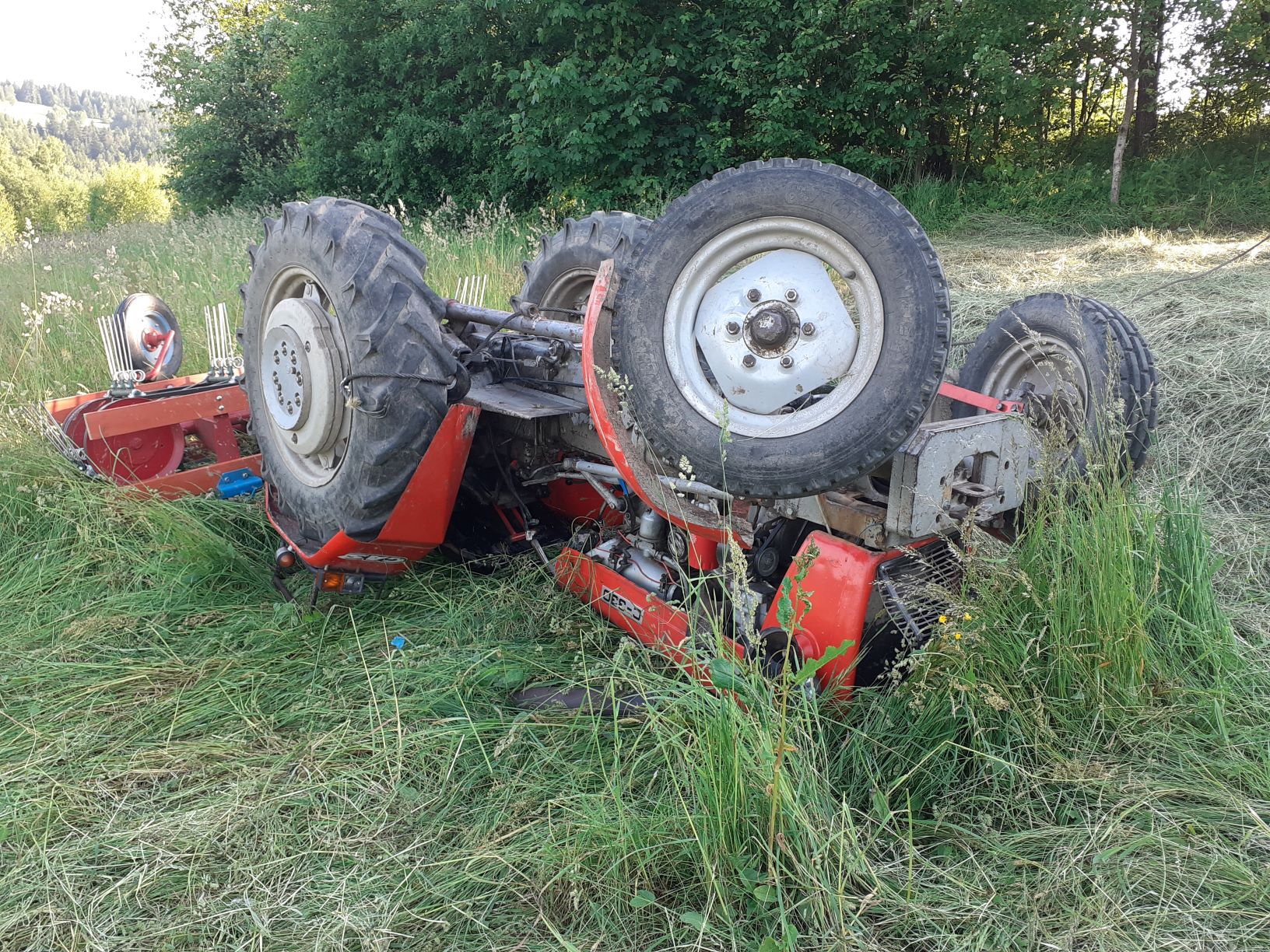 W godzinach popołudniowych 18 czerwca wpłynęło do SKKP PSP zgłoszenie informujące o przygniecionej osobie przez przewrócony ciągnik rolniczy w miejscowości Skomielna Czarna. Strażacy po dotarciu na miejsce zdarzenia przystąpili do podniesienia pojazdu w celu wykonania dostępu i ewakuacji poszkodowanego. W tym celu wykorzystano wyciągarkę samochodową. Osoba poszkodowana nie wykazywała oznak życia dlatego wdrożono resuscytację krążeniowo oddechową. Ratownicy medyczni po przeprowadzeniu diagnostyki odstąpili od dalszych medycznych czynności ratowniczych. Ciągnik postawiono na koła oraz przeciągnięto w miejsce bezpieczne i zabezpieczono. Po przybyciu na miejsce zdarzenia i wykonaniu czynności dochodzeniowych przez policję przetransportowano poszkodowanego w miejsce dostępne dla innych służb. W związku z obserwowanym stanem zdrowia małżonki osoby zmarłej poinformowano i poproszono o interwencję Powiatowy Zespół Interwencji Kryzysowej w Myślenicach.