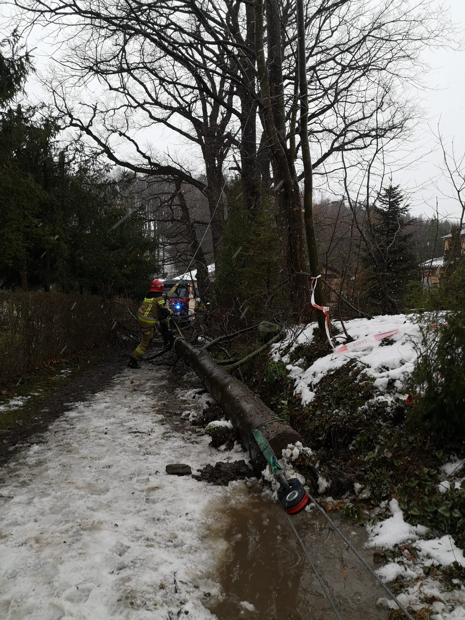 Silne wiatry powodujące uszkodzenia na terenie powiatu myślenickiego