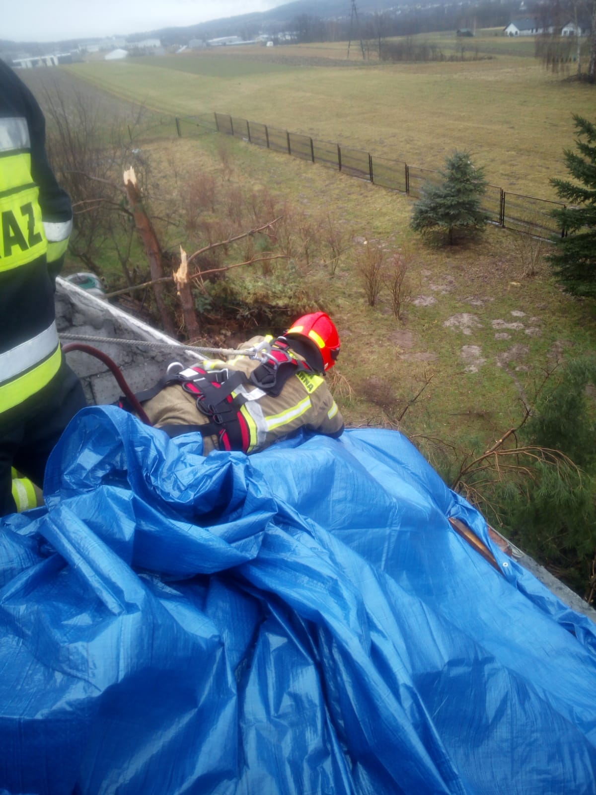 Ostrzeżenia RCB o silnym wietrze w dniu 17 lutego znalazły potwierdzenie w rzeczywistości. Od godziny 6.30 zaczęły spływać do SKKP PSP w Myślenicach zgłoszenia o powalonych drzewach na drogi, jednak kumulacja zgłoszeń nastąpiła od godziny 9.30. Wichura i opady deszczu jakie przeszły przez teren powiatu myślenickiego spowodowały oprócz powalonych drzew również uszkodzenia konstrukcji i pokryć dachowych. Do godziny 16.30 odnotowano udział w 32 akcjach z czego 15 dotyczyło zerwanych lub uszkodzonych dachów, a 17 przewróconych drzew na drogi, budynki, linie energetyczne i telekomunikacyjne. Główny ciężar działań miał miejsce na terenie gmin Myślenice oraz Lubień, a w mniejszej ilości w pozostałych gminach powiatu. W godzinach popołudniowych i nocnych strażacy brali udział jeszcze w 5 zdarzeniach związanych z powalonymi drzewami.