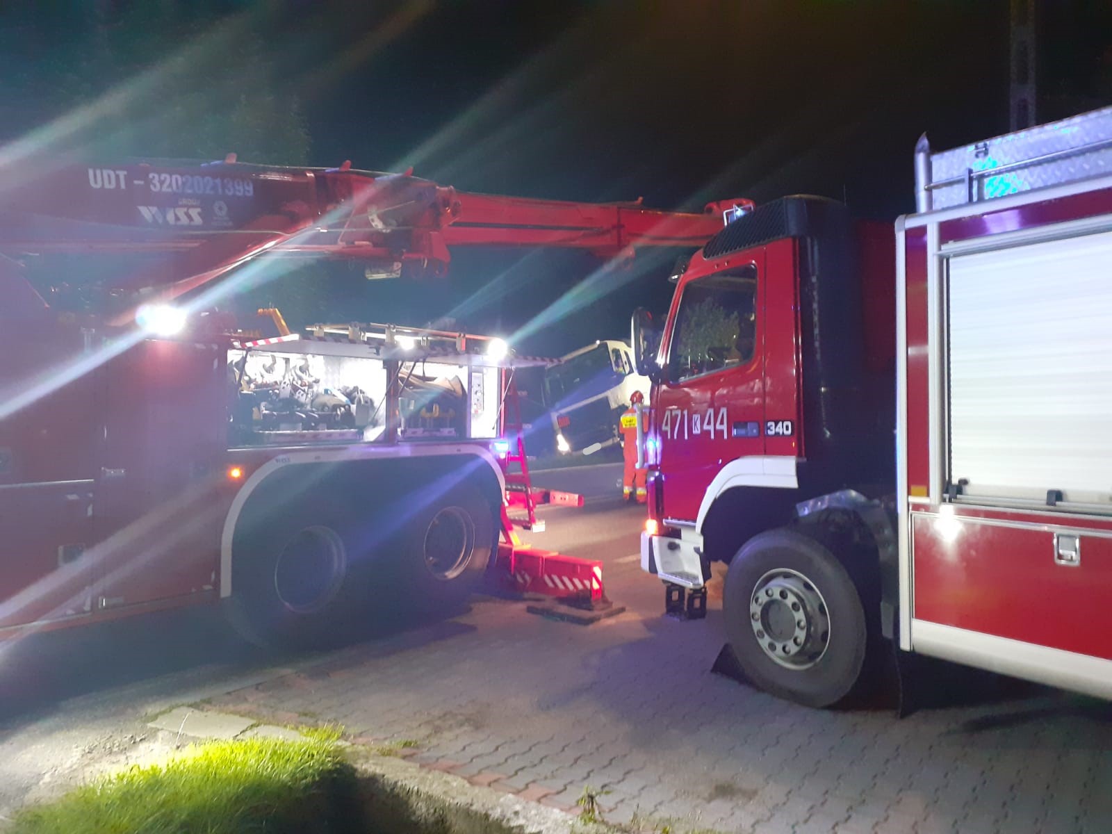 O godzinie 17.30 w dniu 4 sierpnia Dyżurny operacyjny SKKP PSP w Myślenicach odebrał zgłoszenie o zderzeniu motocyklisty z samochodem ciężarowym w miejscowości Wiśniowa na drodze wojewódzkiej nr 964. Natychmiastowo zadysponował do działań ratowniczych zastępy JRG Myślenice oraz OSP Wiśniowa. Na miejscu zdarzenia pierwsi przybyli druhowie OSP stwierdzili, iż w wyniku zderzenia poszkodowany został kierujący motocyklem, a samochód (cysterna) zatrzymał się na nasypie drogi i grozi przewróceniem. Zabezpieczyli obszar objęty działaniami ratowniczymi równocześnie przystępując do udzielania Kwalifikowanej Pierwszej Pomocy poszkodowanemu (prowadzenie RKO, użycie defibrylatora AED). Droga była całkowicie nieprzejezdna. Przybyli na miejsce ratownicy medyczni ZRM, po przejęciu poszkodowanego i przeprowadzeniu diagnostyki odstąpili od działań - stwierdzając zgon mężczyzny. Strażacy JRG ustabilizowali samochód ciężarowy wykorzystując wyciągarki samochodowe i podpory. Wezwano na miejsce zdarzenia Specjalistyczną Grupę Ratownictwa Technicznego z JRG 2 Kraków w celu udzielenia pomocy służbom drogowym podczas wyciągania samochodu cysterny i zabezpieczeniu jej do celów procesowych. Po zakończeniu czynności wyjaśniających przebieg zdarzenia przez funkcjonariuszy Policji oraz prokuratora usunięto rozbite elementy pojazdów oraz przeprowadzono sorpcję rozlanych płynów eksploatacyjnych z jezdni. Przejazd na tym odcinku drogi wojewódzkiej był niemożliwy ponad 6 godzin - podróżujący korzystali z objazdów.