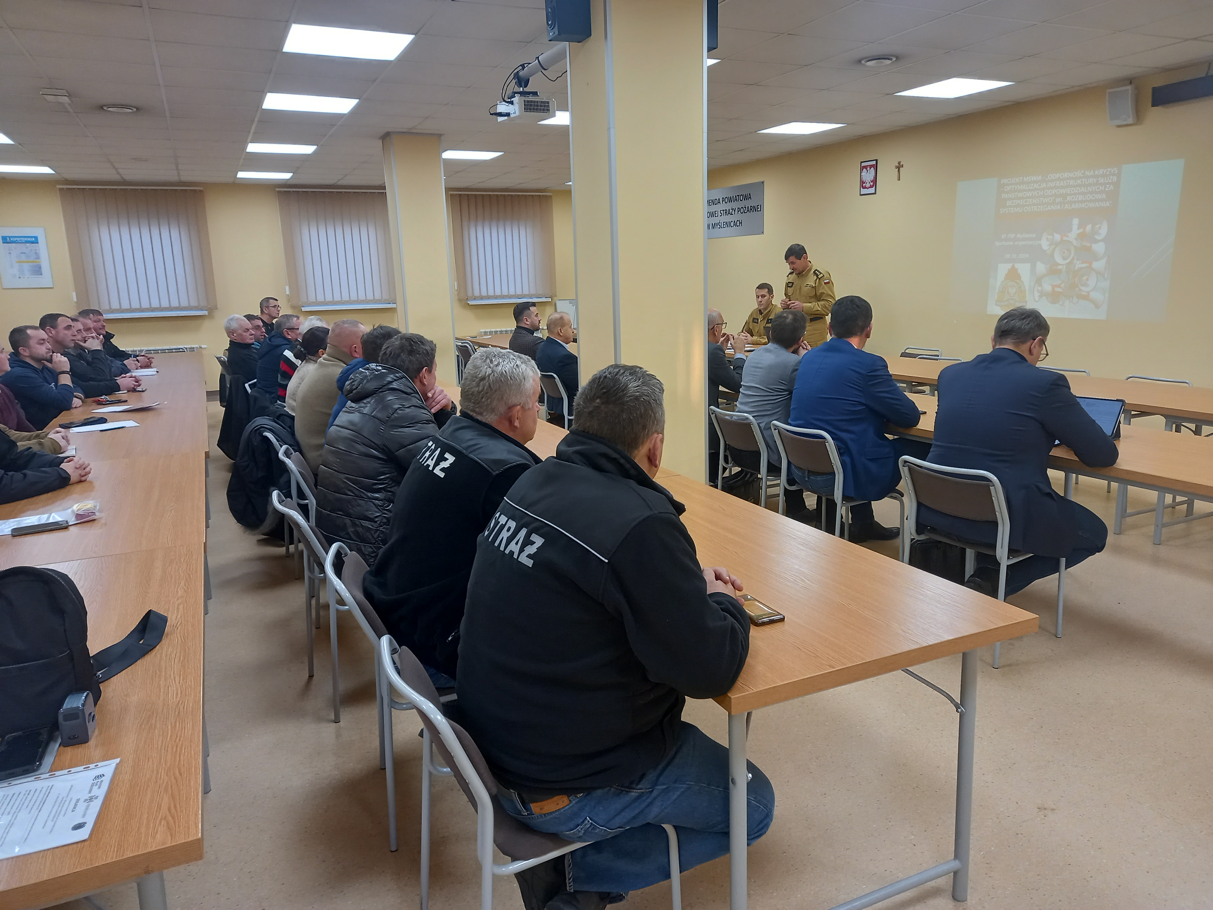W dniu 9 stycznia 2024r. w Komendzie Powiatowej Państwowej Straży Pożarnej w Myślenicach, odbyło się spotkanie organizacyjne które dotyczyło projektu MSWiA „Odporność na kryzys – optymalizacja infrastruktury służb państwowych odpowiedzialnych za bezpieczeństwo” pn. „Rozbudowa systemu ostrzegania i alarmowania”.