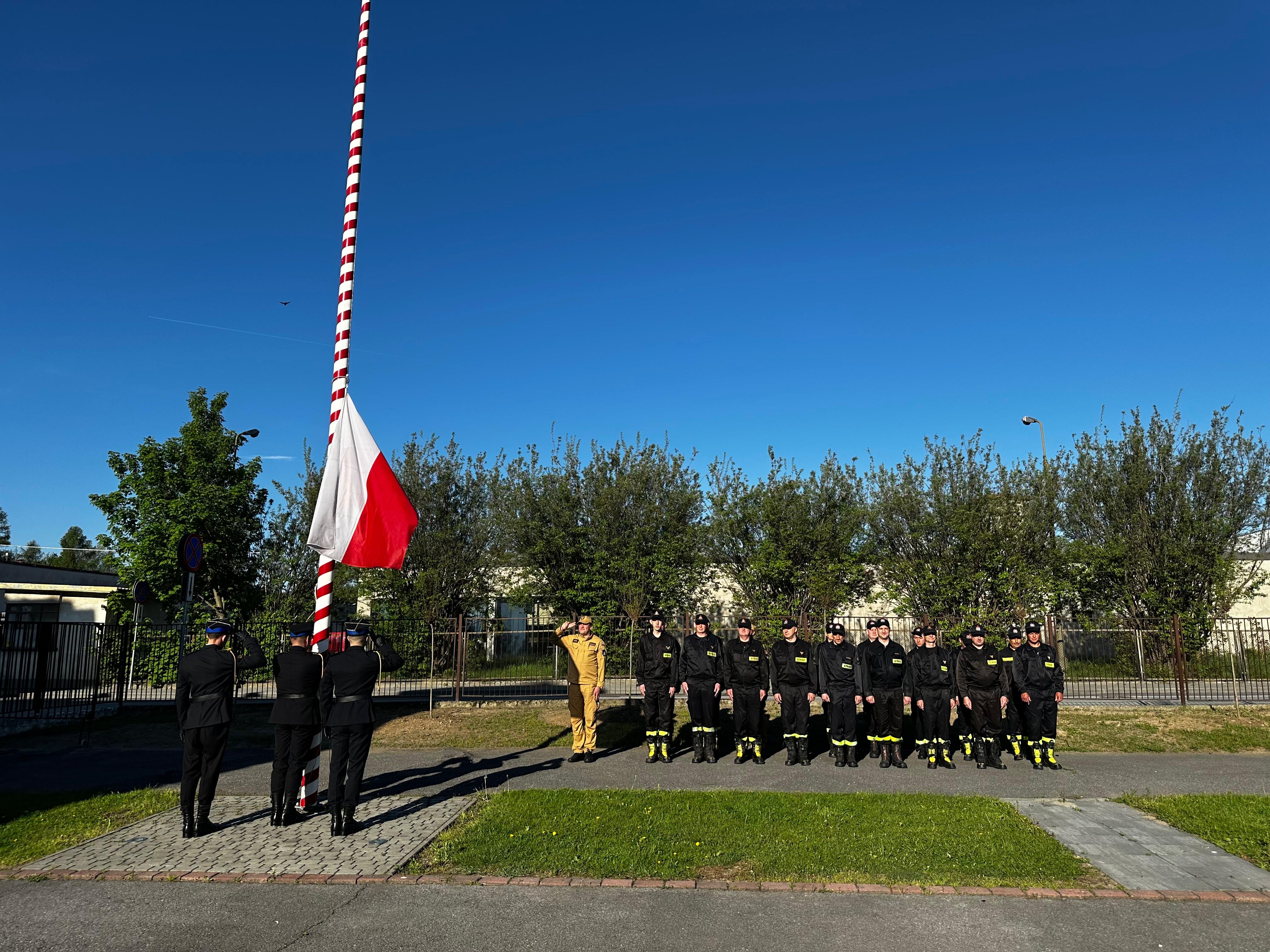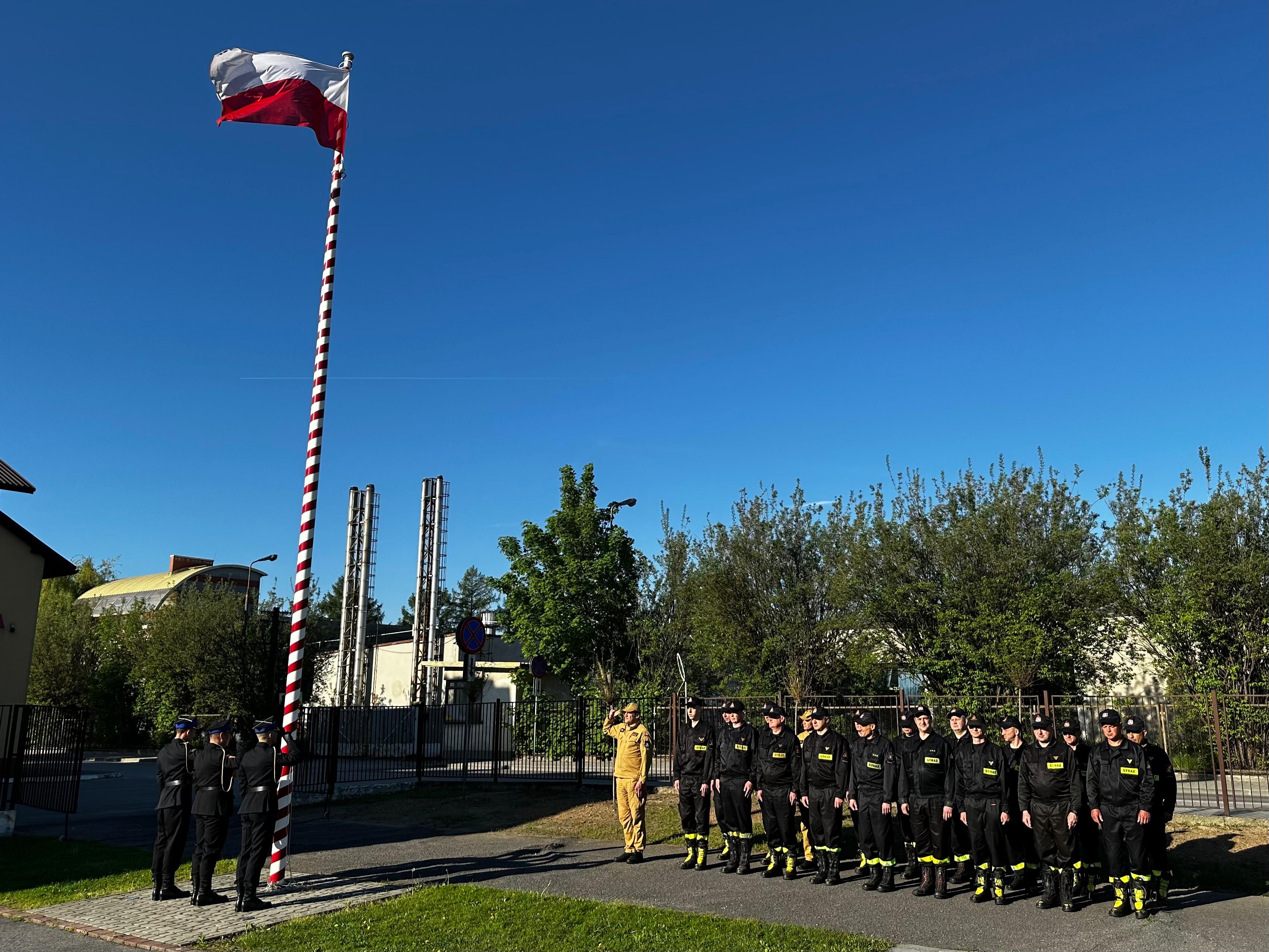 2 maja 2025 roku w Komendzie Powiatowej Państwowej Straży Pożarnej w Myślenicach odbyła się uroczysta zmiana służby, podczas której strażacy oddali hołd barwom narodowym. Centralnym punktem uroczystości było uroczyste podniesienie flagi Rzeczypospolitej Polskiej na maszt przy dźwiękach hymnu państwowego.
