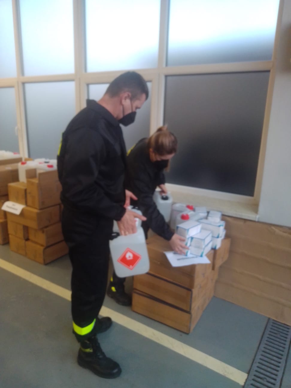 W środę i czwartek przed Świętami Wielkanocnymi strażacy PSP i OSP przeprowadzili szybką akcję dystrybucji środków ochrony indywidualnej (płyny dezynfekcyjne, maseczki, rękawiczki) do parafii zlokalizowanych na terenie powiatu myślenickiego. Po otrzymaniu dostawy przygotowano w KP PSP rozdzielnik i poinformowano jednostki OSP o potrzebie odebrania środków i dostarczenia ich do parafii. Druhowie natychmiast podjęli się kolejnego zadania mającego na celu przeciwdziałanie szerzeniu się pandemii koronawirusa Sars-Cov-2. Mając dostęp do środków dezynfekcyjnych korzystajmy z nich jak najczęściej dla naszego wspólnego bezpieczeństwa.