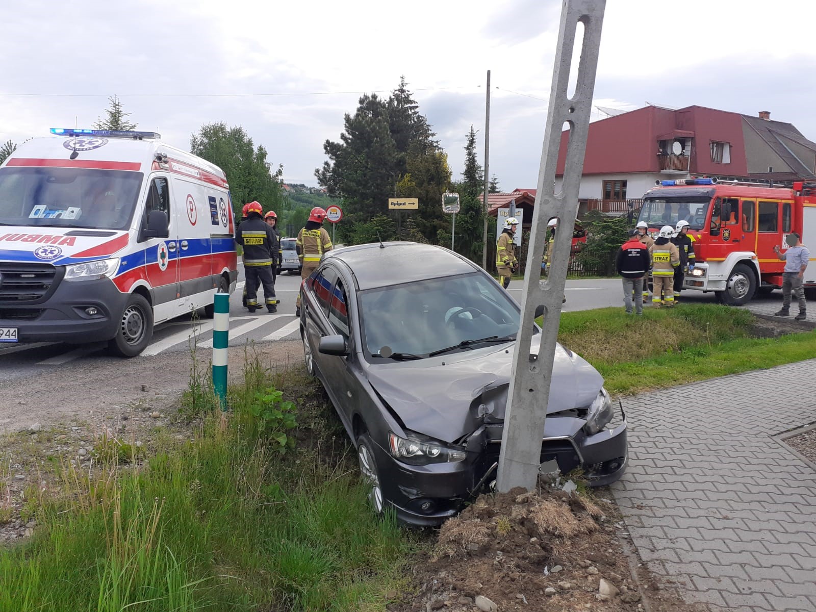 Przed końcem służby o godzinie 6.20 w dniu 27 maja strażacy JRG Myślenice zostali zadysponowani przez Stanowisko Kierowania Komendanta Powiatowego PSP do zdarzenia w którym samochód osobowy wypadł z jezdni drogi wojewódzkiej DW 967 i uderzył w betonowy słup. Syrena zawyła również w OSP Brzączowice. W wyniku uderzenia poszkodowany został kierujący samochodem, który znajdował się pod opieką ratowników medycznych ZRM. Przeprowadzili oni diagnostykę i podjęli decyzję o przewiezieniu go do Szpitalnego Oddziału Ratunkowego w Myślenicach. Strażacy zabezpieczyli miejsce akcji, skontrolowali pojazd pod kątem wycieków płynów eksploatacyjnych, których nie stwierdzono. Zdarzenie zakończono przekazaniem miejsca zdarzenia odpowiednim służbom.