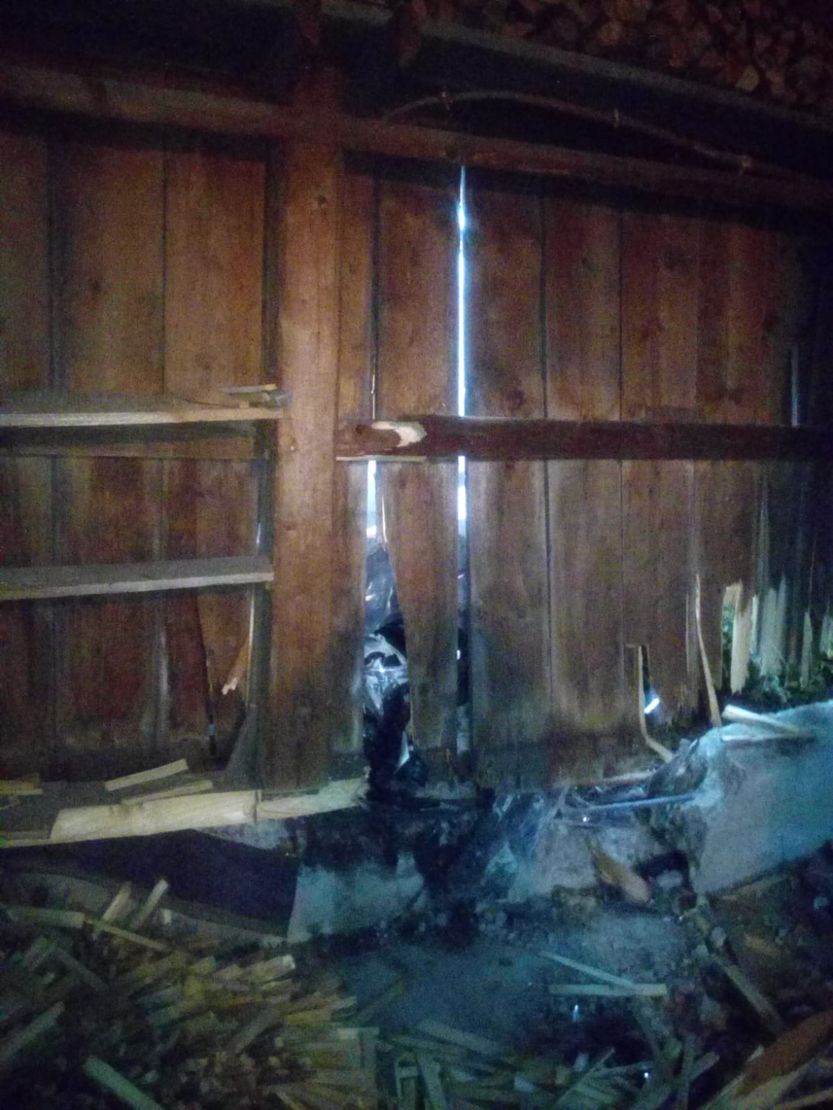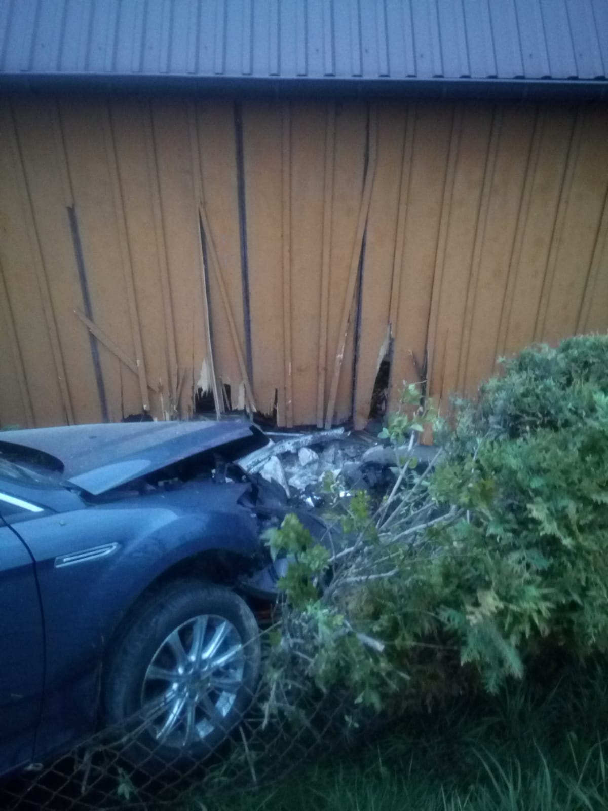 Uderzenie samochodu osobowego w drewniany budynek gospodarczy