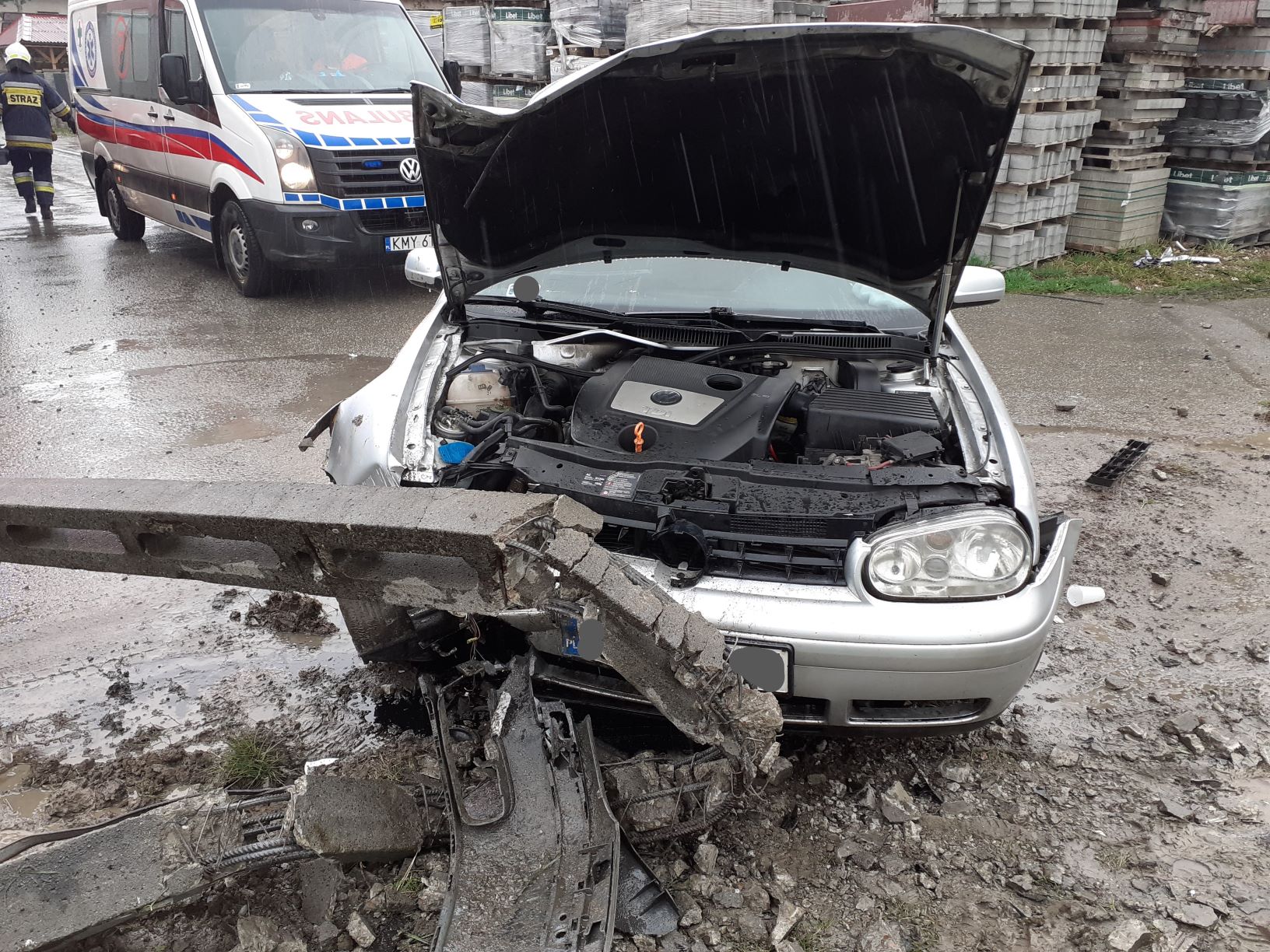 Uderzenie samochodu w słup energetyczny