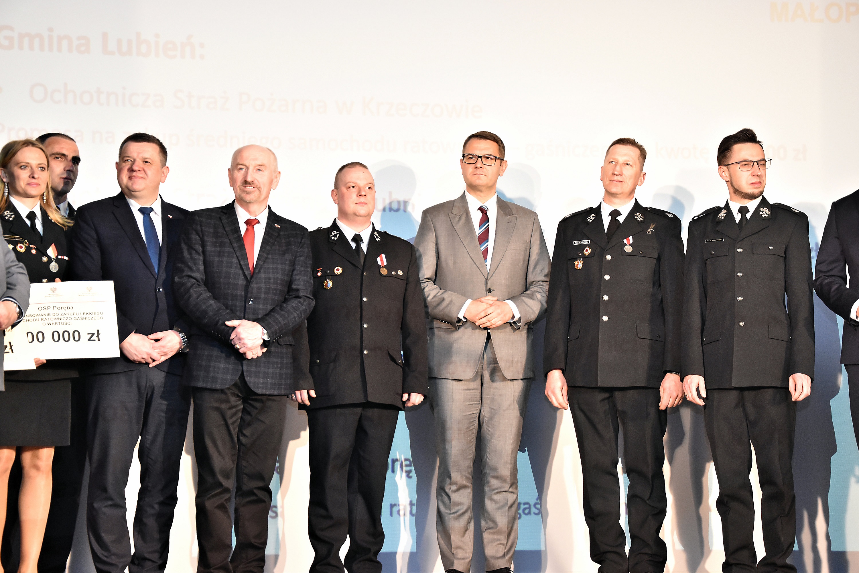 Dla jednostek z terenu powiatu myślenickiego, promesy trafiły do: OSP Lubień, OSP Krzeczów, OSP Poręba i OSP Myślenice-Śródmieście. Przekazane środki dofinansują zakup samochodów lekkich dla jednostek z Poręby oraz Myślenic, samochodu średniego dla jednostki z Krzeczowa, oraz samochodu ciężkiego dla jednostki z Lubnia. W wydarzeniu udział wzięli przedstawiciele Państwowej Straży Pożarnej: bryg. Przemysław Przęczek Zastępca Małopolskiego Komendanta Wojewódzkiego PSP oraz st. bryg. Sławomir Kaganek Komendant Powiatowy Państwowej Straży Pożarnej w Myślenicach.
