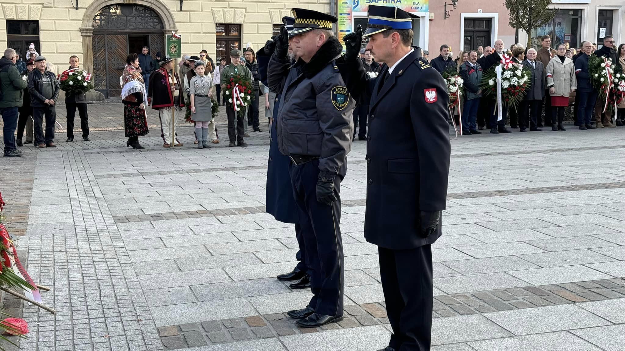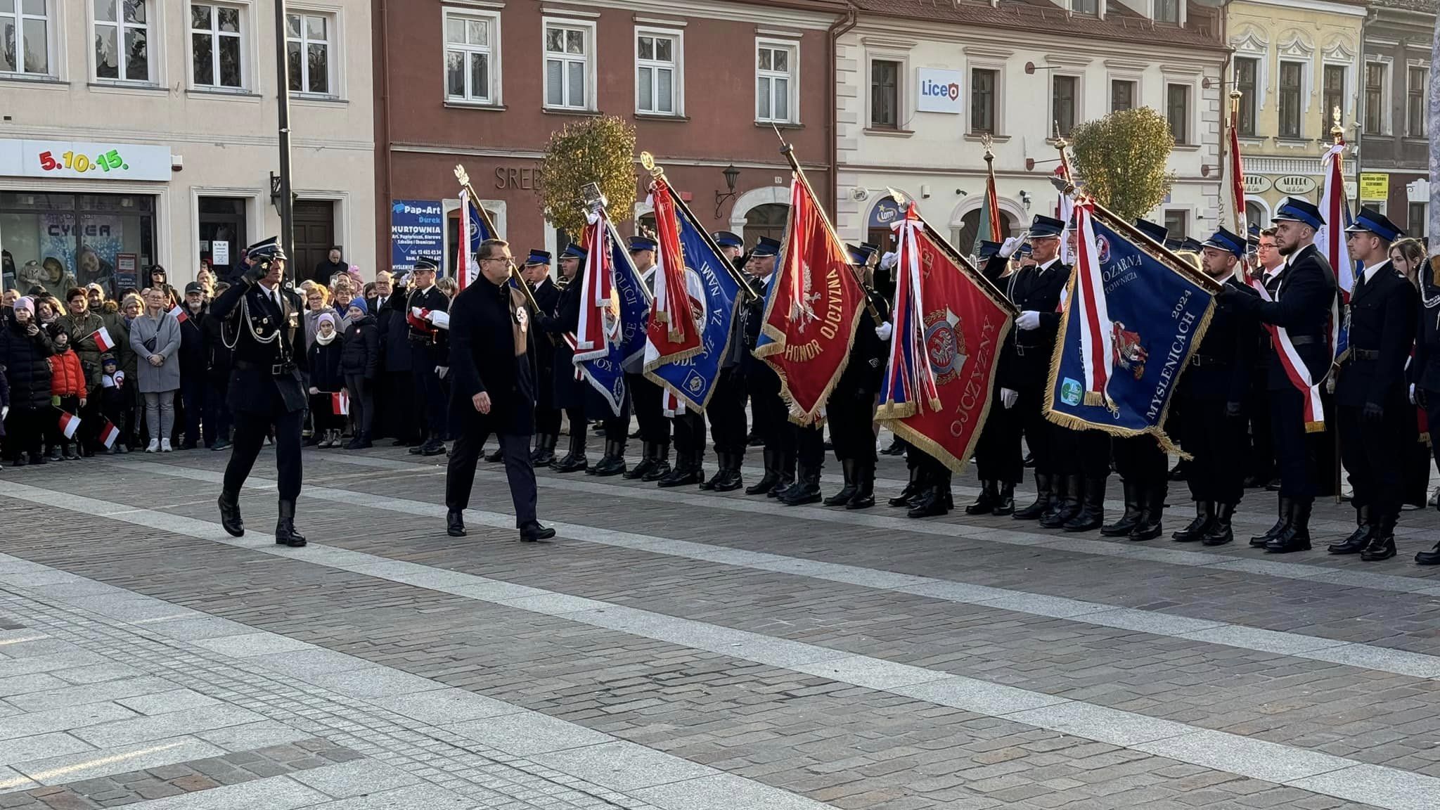 Zastępca Komendanta Powiatowego Państwowej Straży Pożarnej w Myślenicach st. bryg. Wojciech Murzyn wraz z funkcjonariuszami tut. Komendy, wzięli udział w głównych uroczystościach związanych z obchodami Narodowego Święta Niepodległości, które odbyły się 11 listopada na płycie myślenickiego Rynku.