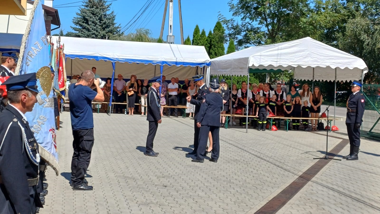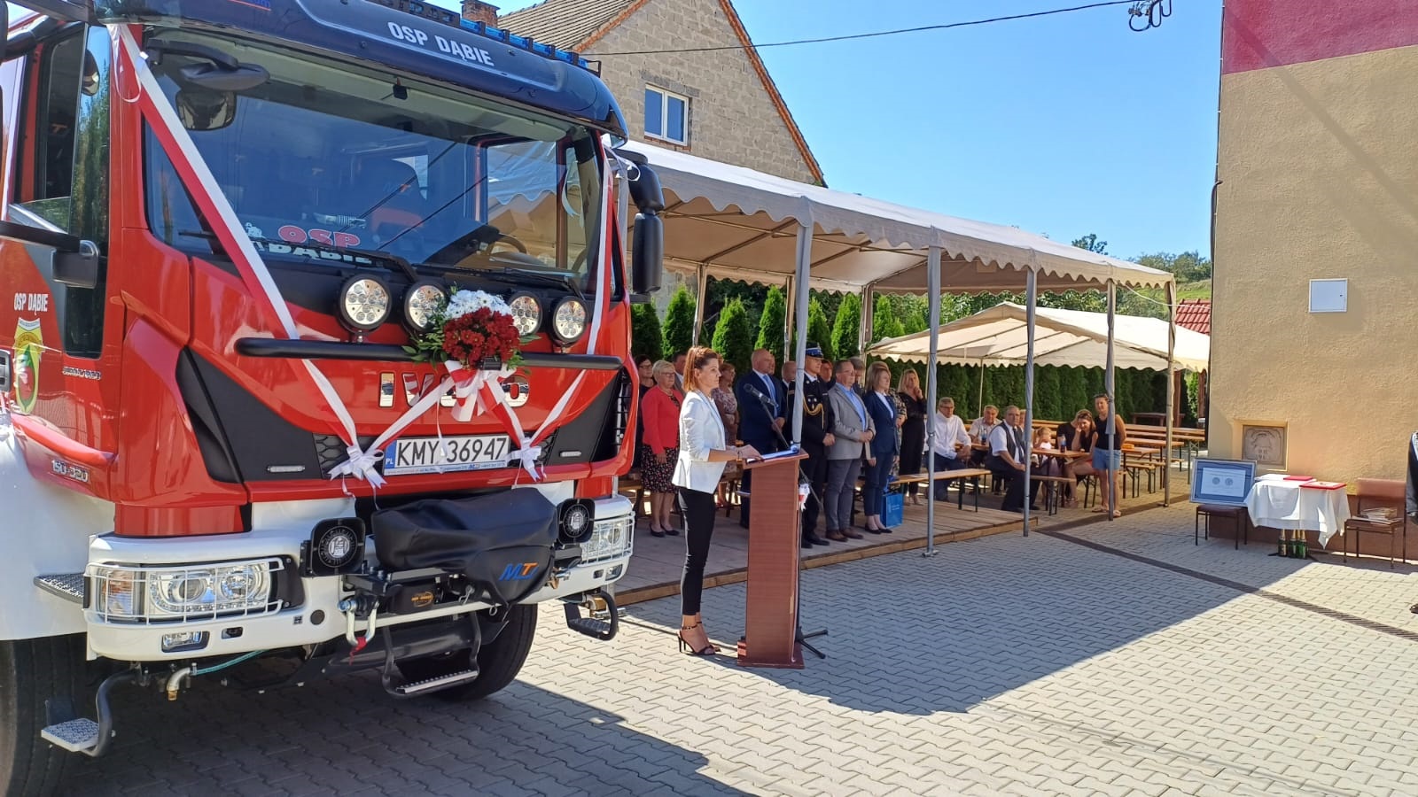 W uroczystości udział wzięli m.in.: poseł na sejm Władysław Kurowski, senator Andrzej Pająk, pani Ewa Gil- II Zastępca Dyrektora Biura Wojewody, bryg. Przemysław Przęczek - Zastępca Małopolskiego Komendanta Wojewódzkiego Państwowej Straży Pożarnej w Krakowie, Robert Bylica - Radny Sejmiku Województwa Małopolskiego, Jolanta Majka - radna powiatowa, Wacław Żarski - Wójt Gminy Raciechowice, Robert Żurek Przewodniczący Rady Gminy Raciechowice