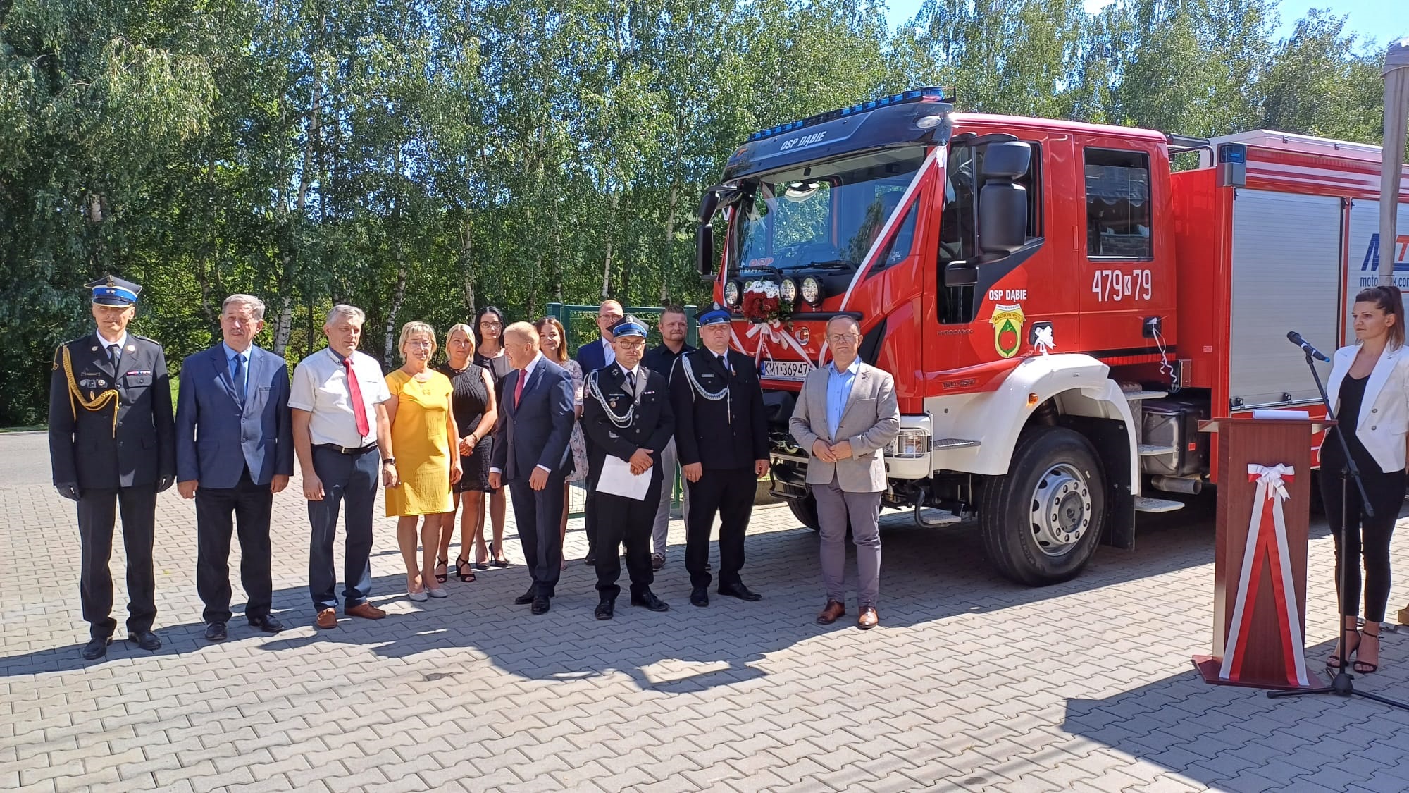 W sobotę 12 sierpnia 2023 roku Komendant Powiatowy Państwowej Straży Pożarnej w Myślenicach st. bryg. Sławomir Kaganek wziął udział w uroczystym apelu z okazji 75 lecia istnienia jednostki OSP Dąbie, podczas którego dokonano poświęcenia oraz przekazania do użytku nowego średniego samochodu ratowniczo-gaśniczego GBA dla jubilatki. Uroczystość poprzedziła msza święta odprawiona w kościele parafialnym pw. Św. Jakuba w Raciechowicach gdzie nastąpiło uroczyste poświęcenie pojazdu. Następnie wszyscy uczestnicy udali się na plac przy remizie OSP gdzie odbył się uroczysty apel. Zakup wspófinansowany był ze środków WFOŚiGW, NFOŚiGW, KG PSP, MSWiA, Urząd Gminy oraz środki własne OSP.