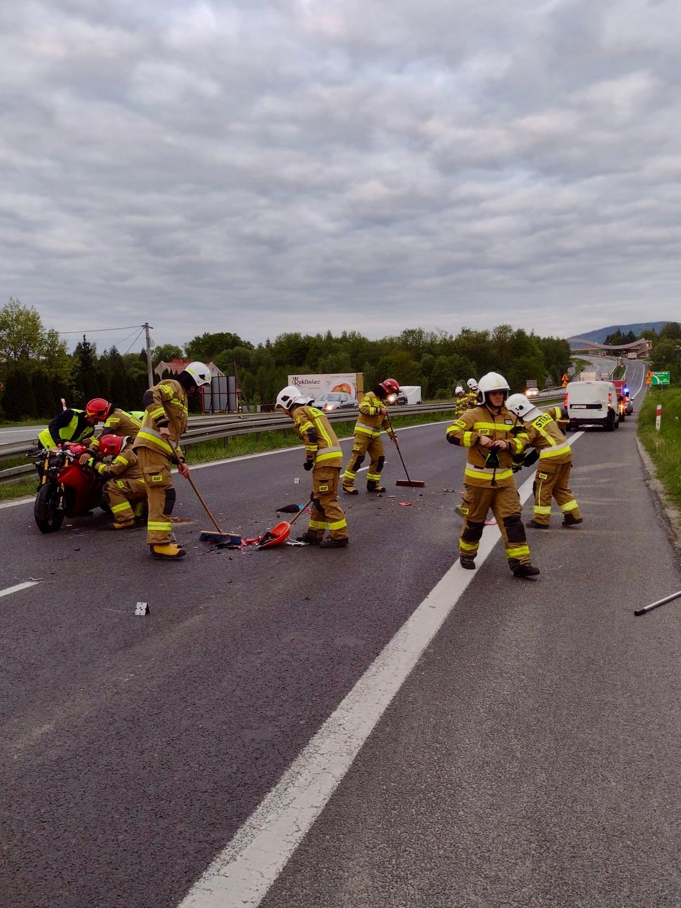 W dniu 8 maja 2025r. jednostka Państwowej Straży Pożarnej w Myślenicach została zadysponowane do zdarzenia drogowego, które miało miejsce na drodze krajowej nr 7 w Jaworniku.