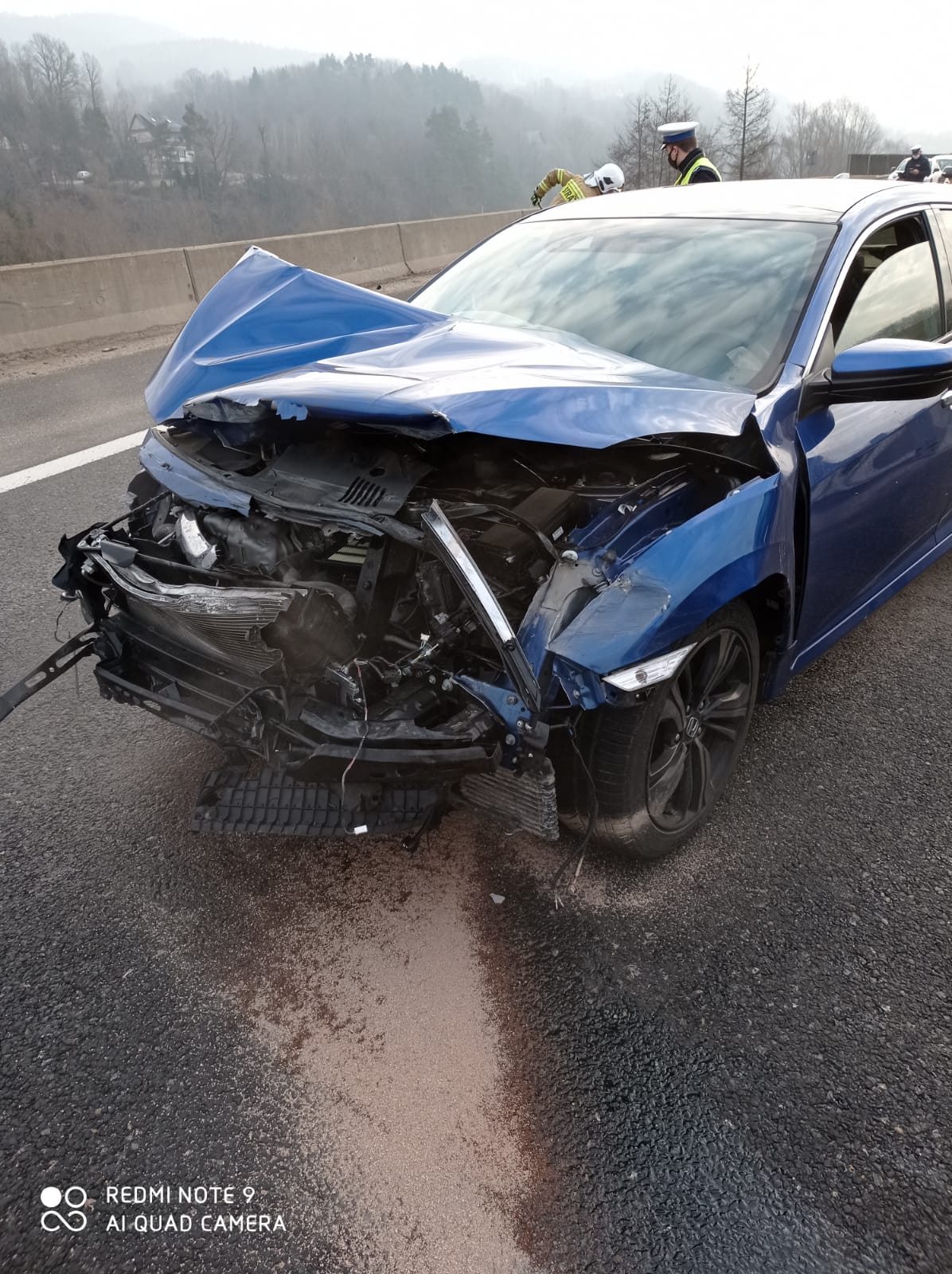 Służba strażaków JRG Myślenice w dniu 19 marca rozpoczęła się od wyjazdu ratowniczego na drogę ekspresową S7 w miejscowości Stróża. Na pasie ruchu w kierunku Krakowa samochód osobowy uderzył w barierę ochronną. Przejazd jednym pasem ruchu został zablokowany przez uszkodzony pojazd. W wyniku zdarzenia poszkodowana została jedna osoba. Zabezpieczono miejsce wypadku, poddano sorpcji rozlane płyny eksploatacyjne. Obrażenia osoby poszkodowanej zostały zdiagnozowane przez ratowników medycznych ZRM, którzy podjęli decyzje o przewiezieniu rannej do SOR. Uszkodzony pojazd został zabrany przez pomoc drogową. W działaniach ratowniczych i zabezpieczających brał udział oprócz strażaków PSP również zastęp OSP Pcim.