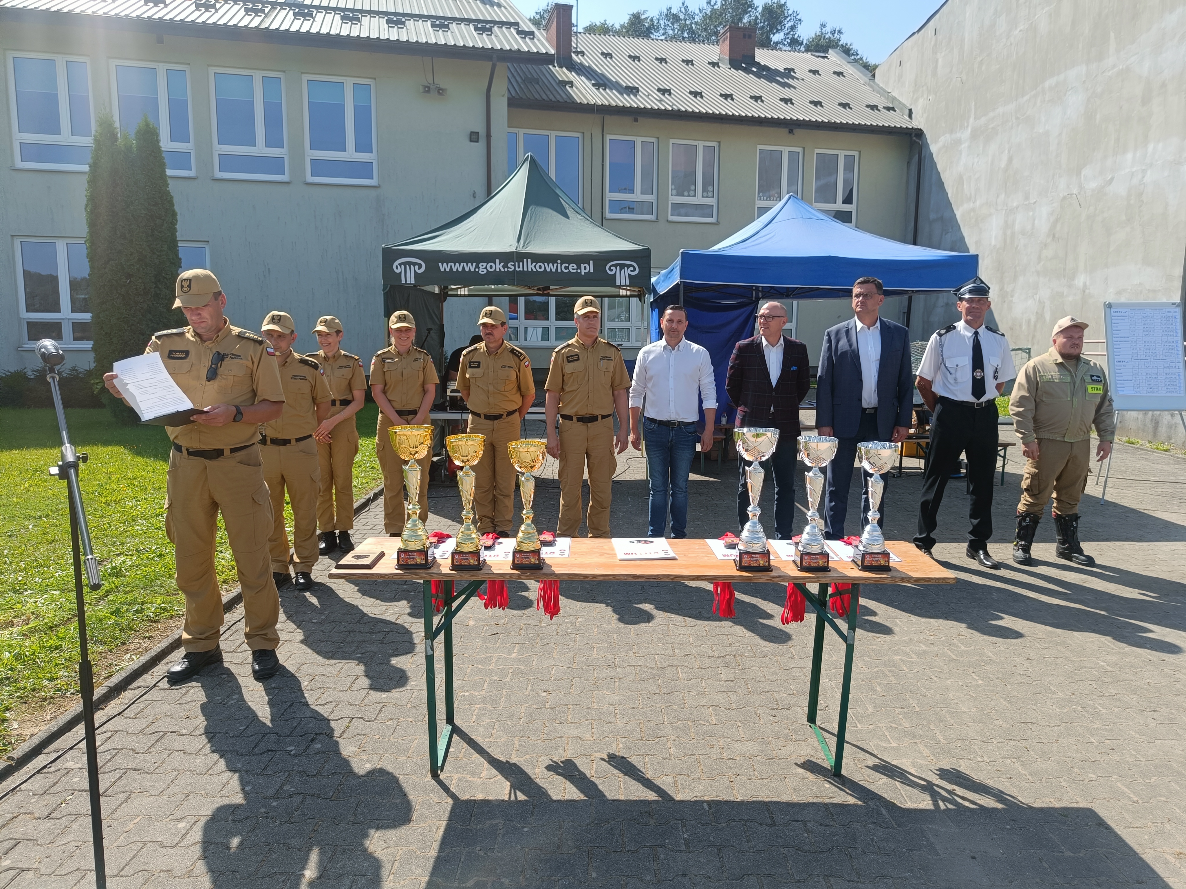 Wręczenia pucharów oraz dyplomów dokonali: Komendant Powiatowy PSP w Myślenicach – st. bryg. Sławomir Kaganek, V-ce Starosta Powiatu Myślenickiego – Rafał Kudas, Burmistrz Gminy Sułkowice – Artur Grabczyk, Kierownik Wydziału Bezpieczeństwa i Ochrony Zdrowia Powiatu Myślenickiego – Małgorzata Bajer, Przewodniczący Rady Miejskiej w Sułkowicach – Waldemar Wolski, Członek Prezydium Zarządu Oddziału Wojewódzkiego ZOSP RP Województwa Małopolskiego – Waldemar Pachoń.