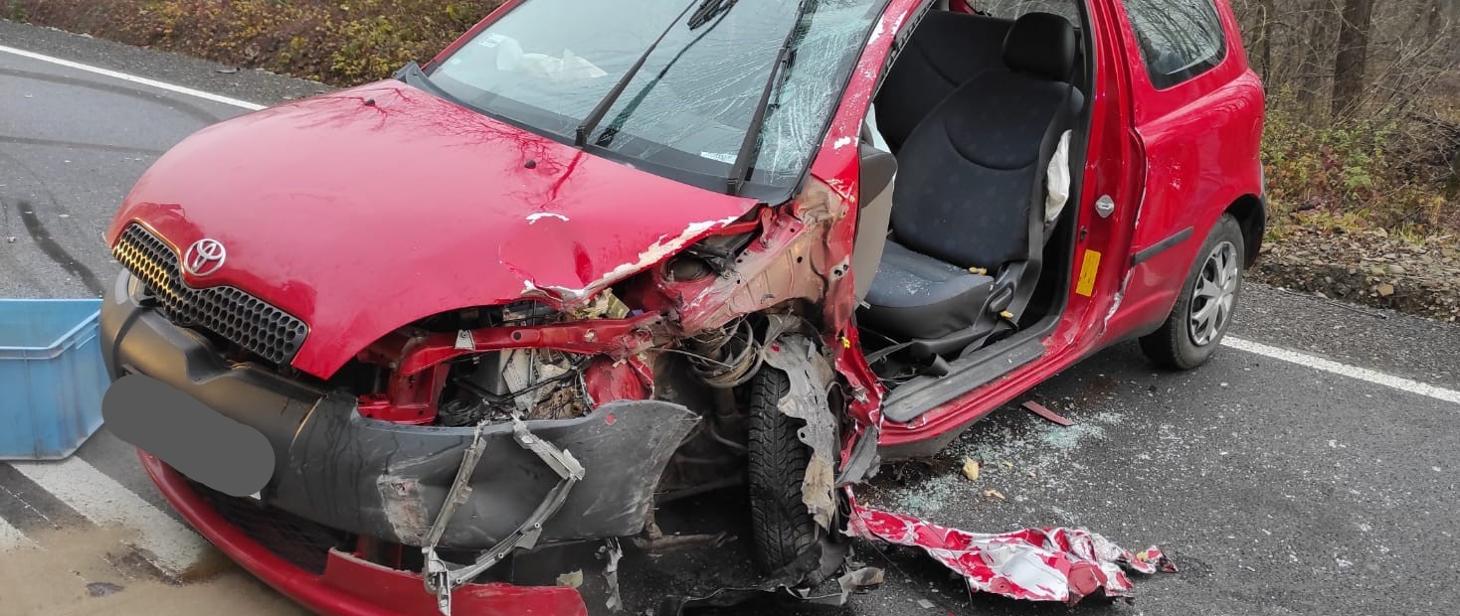 W dniu dzisiejszym 22 listopada o godzinie 7.20 do SKKP PSP w Myślenicach wpłynęło zgłoszenie informujące o czołowym zderzeniu dwóch samochodów osobowych w miejscowości Lubień na drodze wojewódzkiej nr 968. Do działań zadysponowano zastępy JRG Myślenice oraz OSP Lubień. Strażacy po dojeździe na miejsce zdarzenia potwierdzili, iż w zderzeniu jedna osoba pozostaje w pojeździe bez możliwości jego opuszczenia. Zablokowany został przejazd na drodze wojewódzkiej w obu kierunkach. Zabezpieczono miejsce zdarzenia, wykonano dostęp z wykorzystaniem narzędzi hydraulicznych usuwając zniszczone drzwi oraz ewakuowano poszkodowaną z pojazdu na noszach typu deska. W trakcie prowadzonych działań również osoby z drugiego samochodu zaczęły uskarżać się na ból w klatce piersiowej. Zespoły Ratownictwa Medycznego przewiozły w celu dalszej diagnostyki 3 osoby do SOR w Myślenicach. Po czynnościach operacyjnych policji poddano sorpcji rozlane płyny eksploatacyjne za pomocą sorbentu Diatomit.