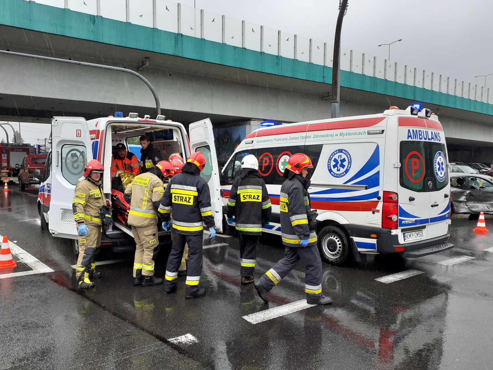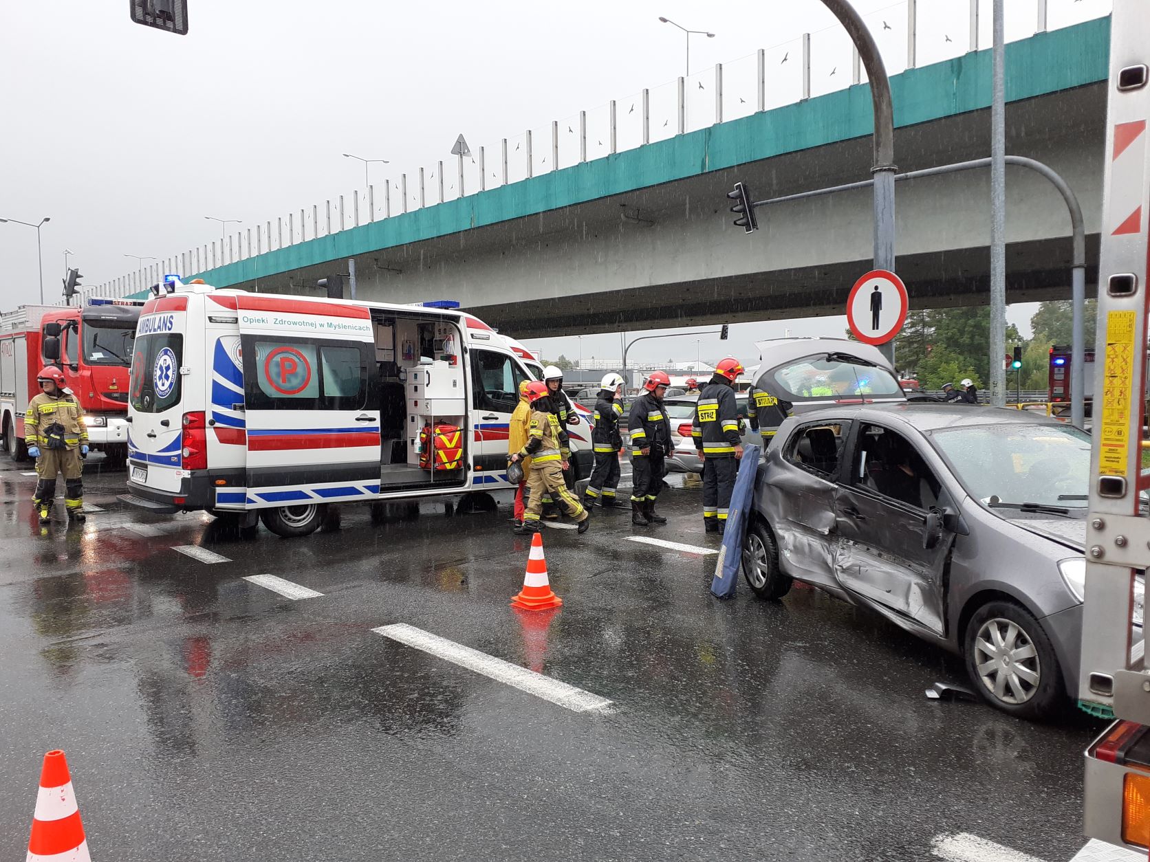 W dniu 24 sierpnia przed godziną 13.00 na skrzyżowaniu „pod Estakadą” w Myślenicach zderzyły się dwa samochody osobowe. Do działań po otrzymaniu zgłoszenia wyruszyły zastępy JRG Myślenice i OSP Myślenice – Śródmieście. W wyniku zderzenia poszkodowane zostały dwie osoby w tym dziecko. Osoby poszkodowane z obrażeniami głowy i twarzy same opuściły pojazd. Strażacy zabezpieczyli miejsce akcji na ruchliwym skrzyżowaniu, przystąpili do diagnostyki i opatrzenia rannych osób. Przybyłe na miejsce akcji Zespoły Ratownictwa Medycznego przejęły poszkodowanych i przewiozły do szpitali w Krakowie i Myślenicach. Kolejne czynności to usunięcie rozbitych elementów z jezdni. W celu udrożnienia mocno użytkowanego skrzyżowania przemieszczono jeden z pojazdów na pobliski parking, a drugi samochód został zabrany przez służby pomocy drogowej. Utrudnienia w ruchu trwały ok. 45 minut. Zderzenia na tej części skrzyżowania mają miejsce pomimo działającej sygnalizacji świetlnej. Jako kierowcy musimy zwracać większą uwagę na to co dzieje się wokół nas na drodze.