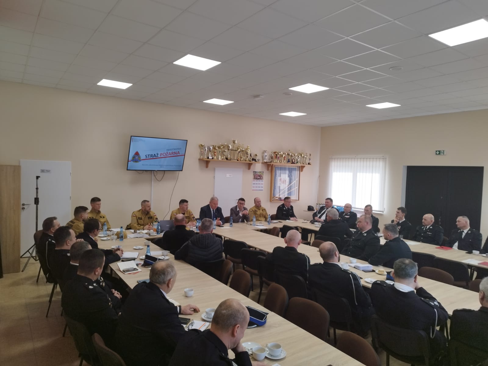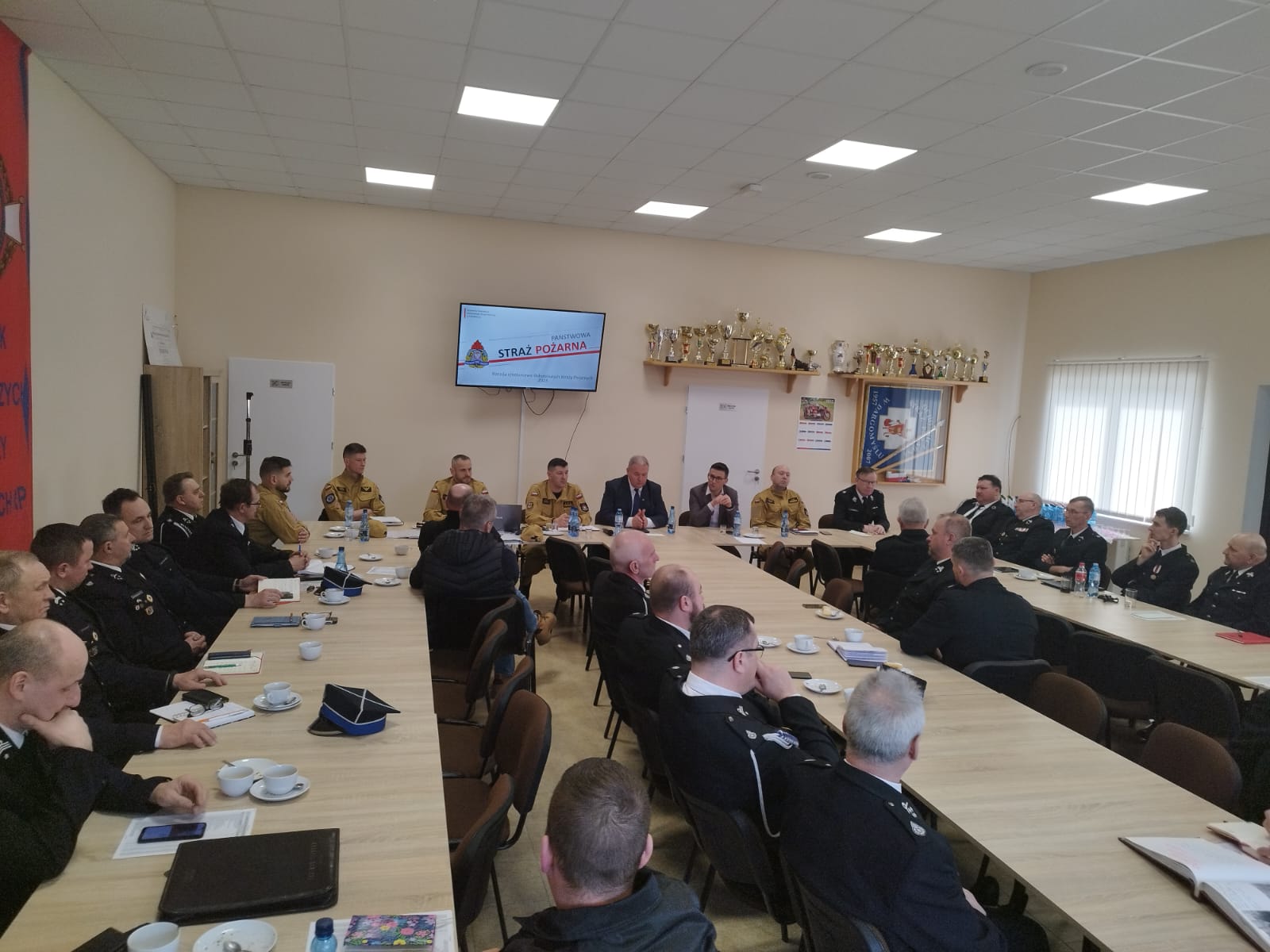 Głównym tematem spotkania było omówienie współpracy pomiędzy Państwową Strażą Pożarną a jednostkami Ochotniczych Straży Pożarnych oraz zagadnień związanych z wdrażaniem Ustawy o Ochotniczych Strażach Pożarnych.