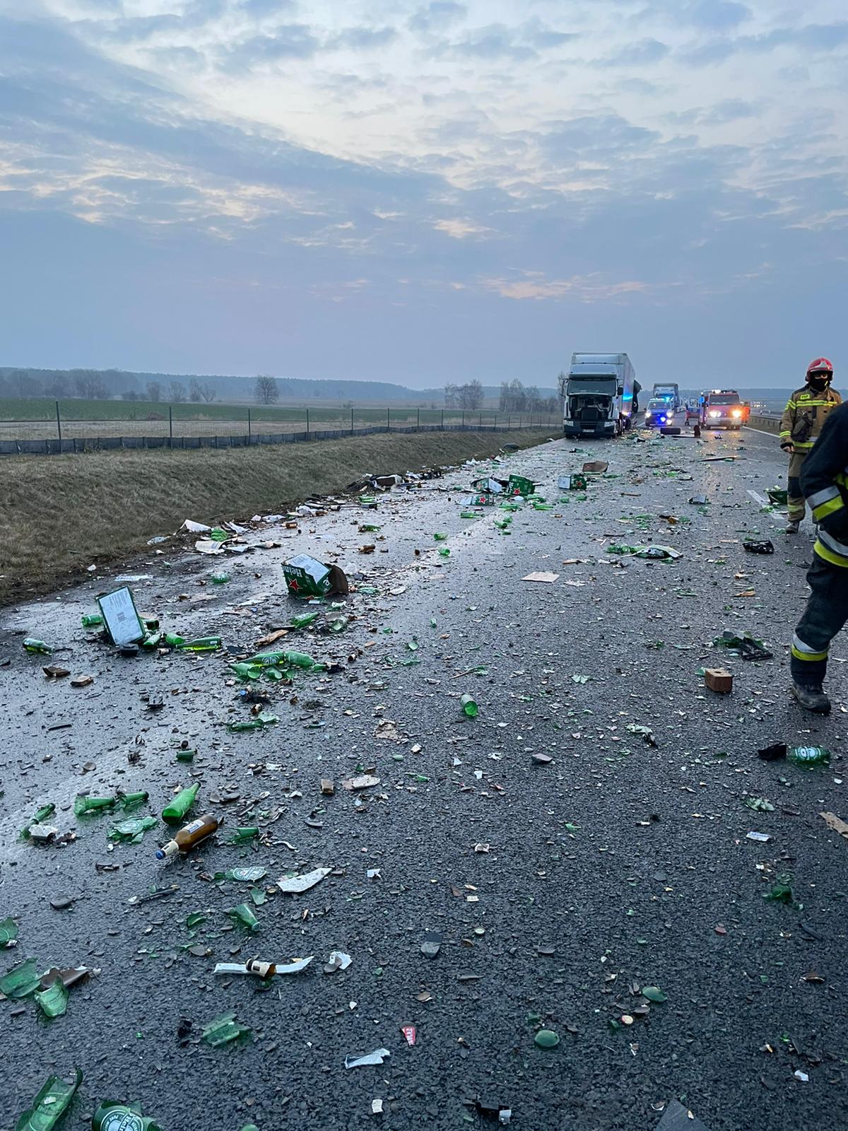 Niebezpieczny wypadek z udziałem dwóch ciężarówek na drodze krajowej S 3