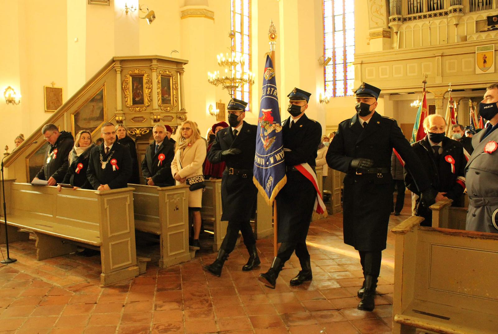 11 listopada 2021 r. Komendant Powiatowy PSP w Myśliborzu - mł. bryg. Maciej Iwko wraz z Pocztem Sztandarowym wzięli udział w obchodach Narodowego Święta Niepodległości w Myśliborzu. Uroczystości rozpoczęła Msza Święta w intencji Ojczyzny odprawiona w Kolegiacie św. Jana Chrzciciela, po której nastąpił przemarsz na Rynek Miejski, gdzie miały miejsce okolicznościowe przemówienia oraz złożenie kwiatów przy obeliskach.