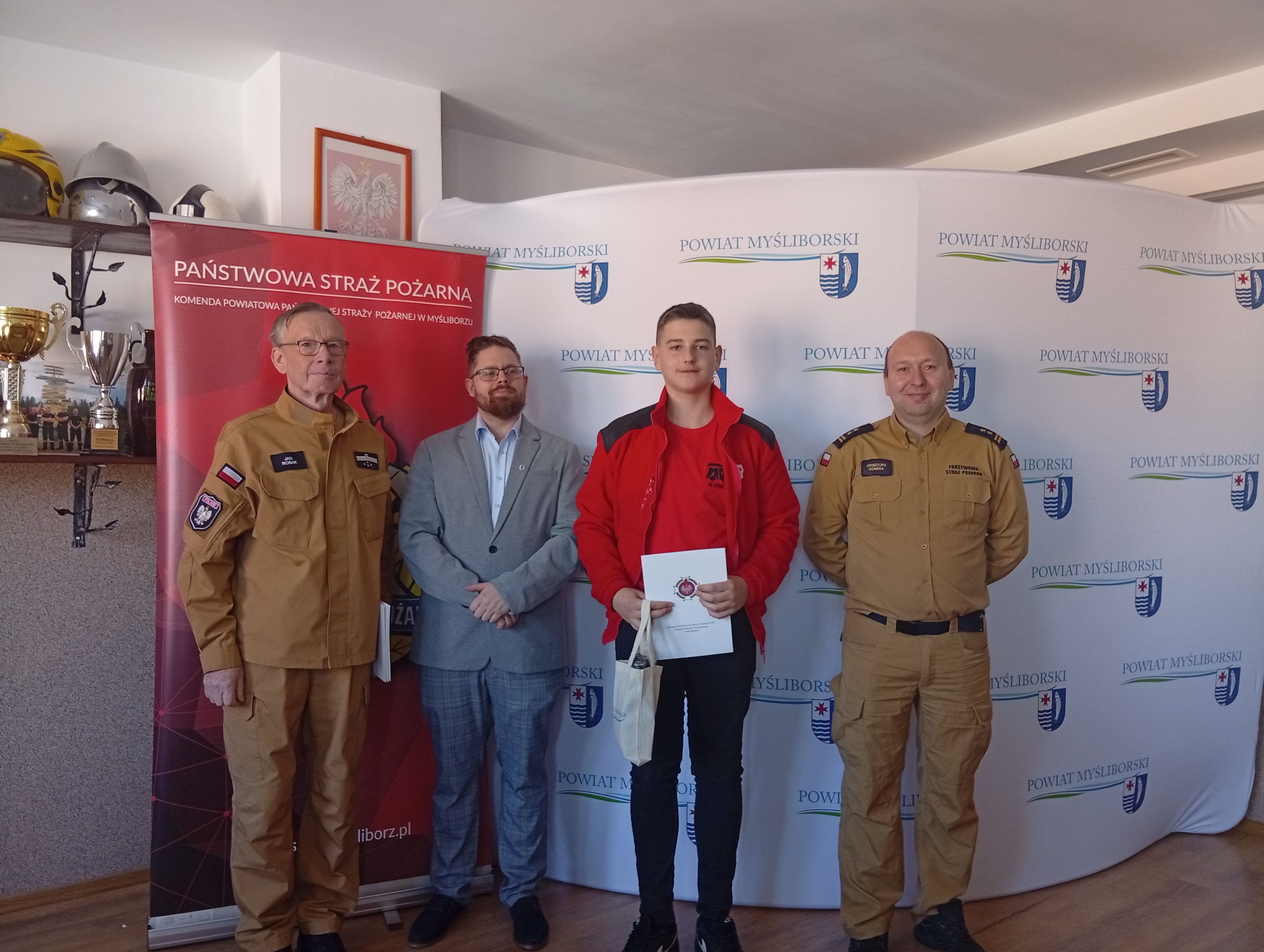 Honorowy patronat nad wydarzeniem objął Starosta Myśliborski – Pan Robert Dudek, który był również fundatorem nagród dla uczestników konkursu. W imieniu Pana Starosty nagrody wręczył Pan Tomasz Wierucki -Główny specjalista ds. Obronnych i Zarządzania Kryzysowego.