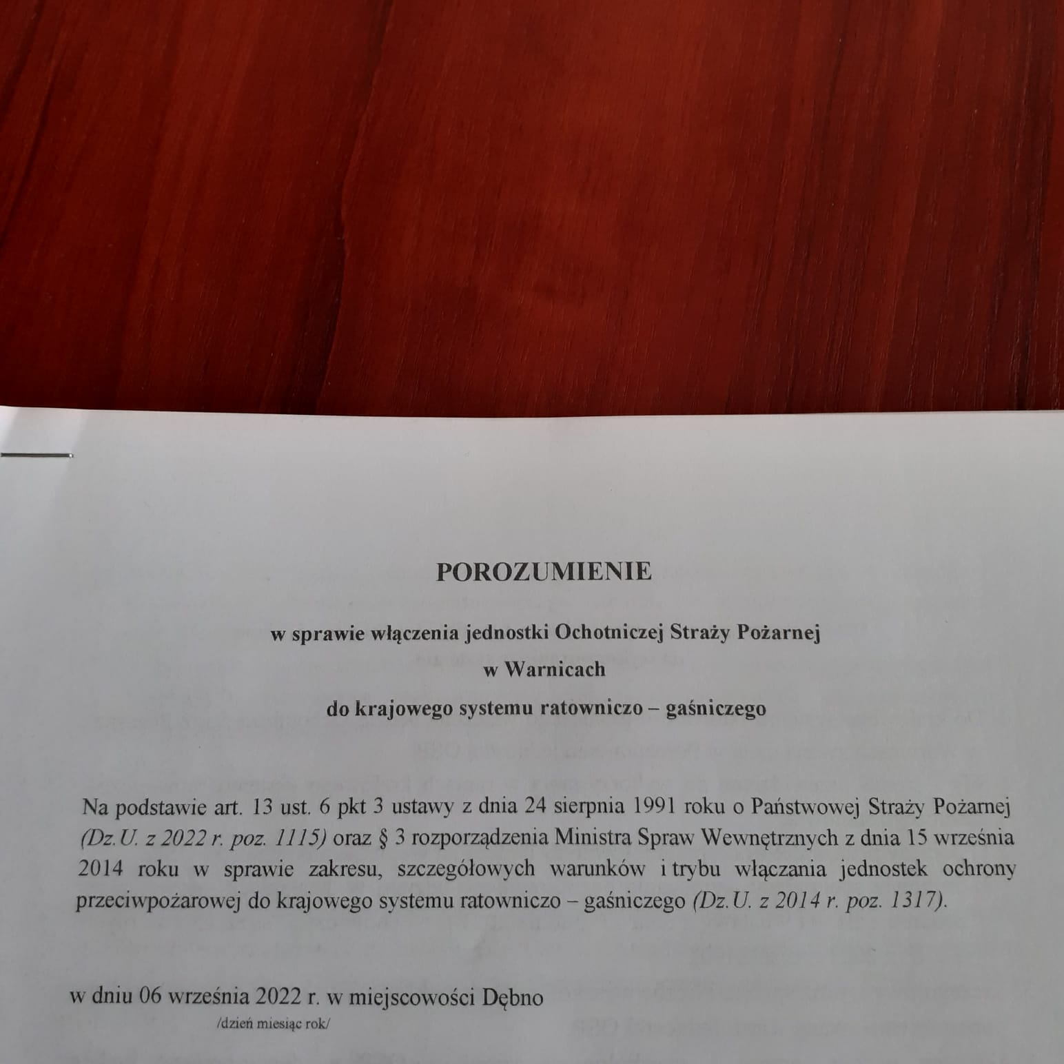 Podpisanie porozumienia o włączeniu do KSRG OSP Warnice
