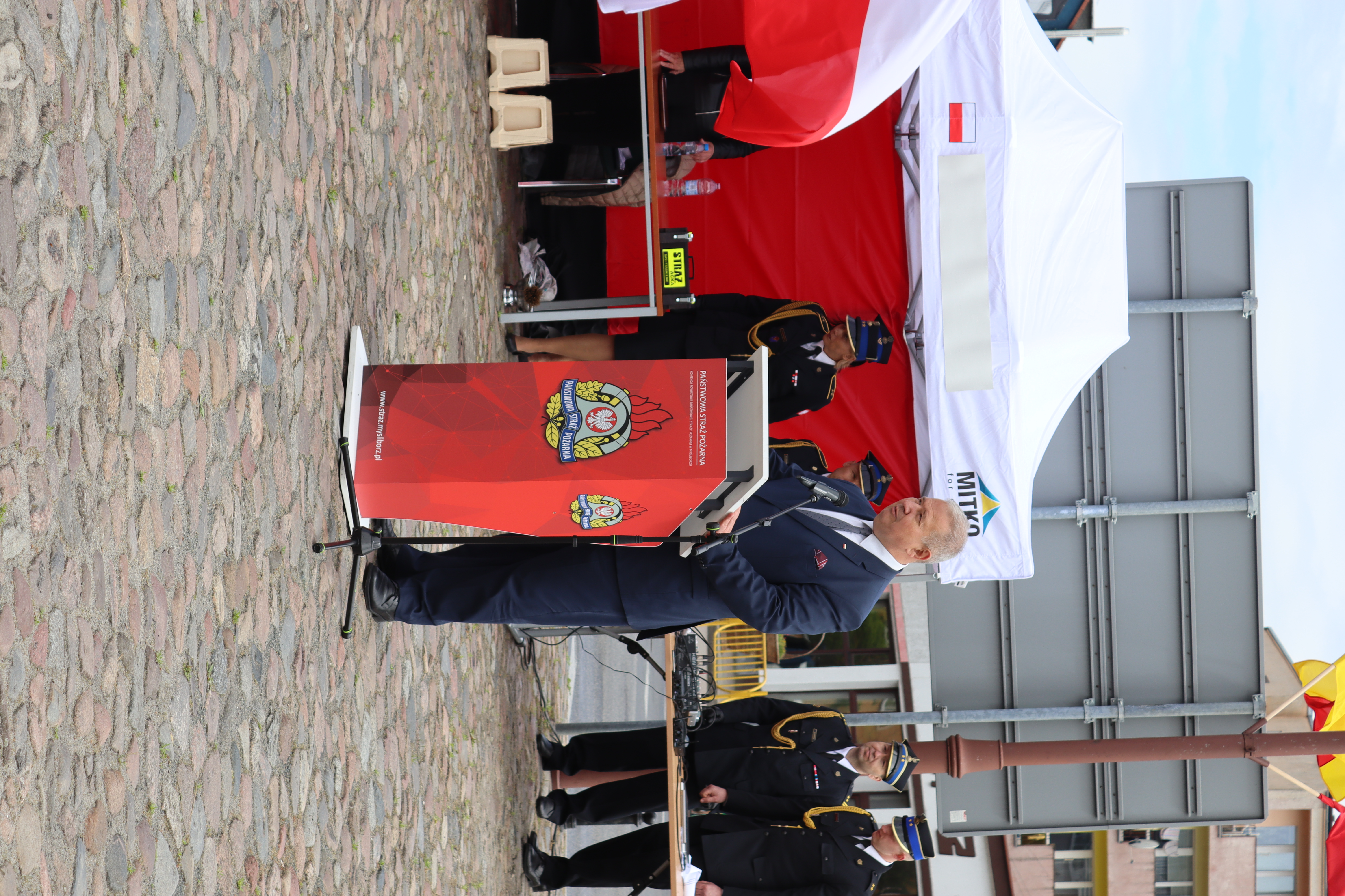 Tak o strażackiej służbie mówił Komendant Powiatowy PSP w Myśliborzu - bryg. Maciej Iwko: "Dzisiejsze Święto, przypadające w roku jubileuszu 30-lecia Państwowej Straży Pożarnej, to okazja do refleksji i podsumowań, ale też do wspomnień o osobach, które tworzyły naszą formację. To także doskonały czas, by podziękować wszystkim tym, którzy wspierają Państwową Straż Pożarną, ale również Ochotnicze Straże Pożarne. Przez te ponad ćwierć wieku nasza formacja stale się rozwijała i doskonaliła, podążając za zmieniającą się rzeczywistością. Wszystko po to, aby móc skutecznie zapobiegać nie tylko pożarom i zdarzeniom drogowym jak dawniej, ale w razie wystąpienia szeregu nowych, nałożonych na Nas zadań ograniczać ich skutki. Istnieją jednak takie elementy naszej służby, które będą na zawsze trwałe i niezmienne. To honor poświęcenie i przywiązanie do tradycji. Ich symbole zawarte są w znaku naszej Formacji oraz Sztandarze".