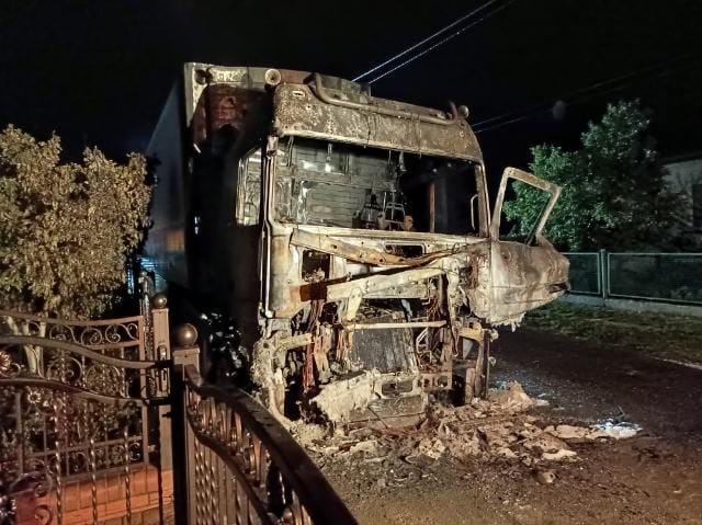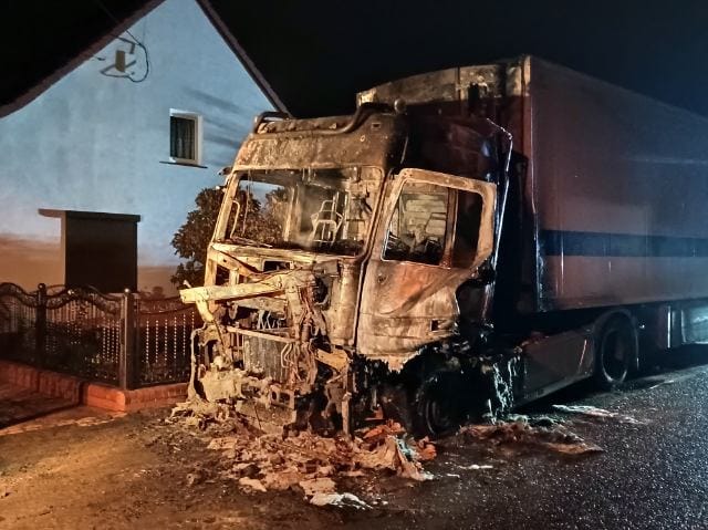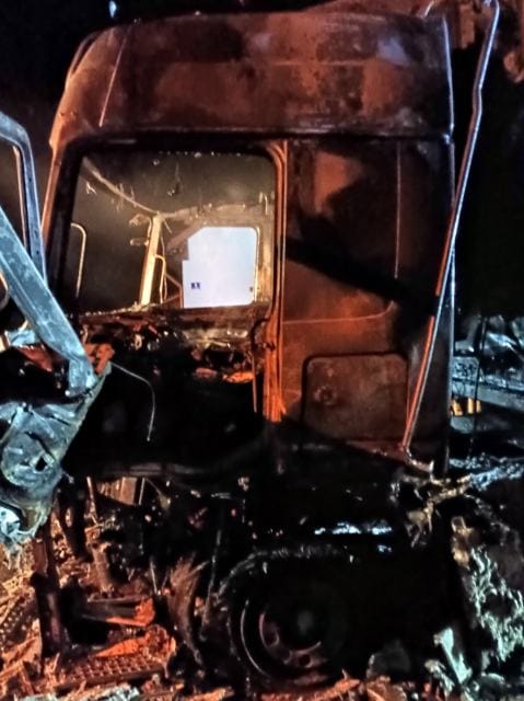 Pożar samochodów ciężarowego