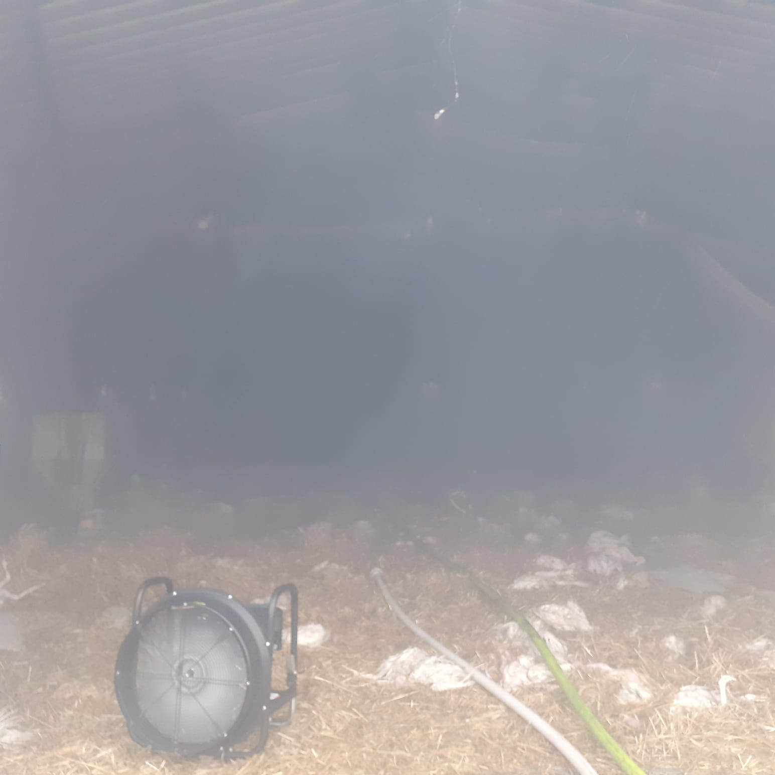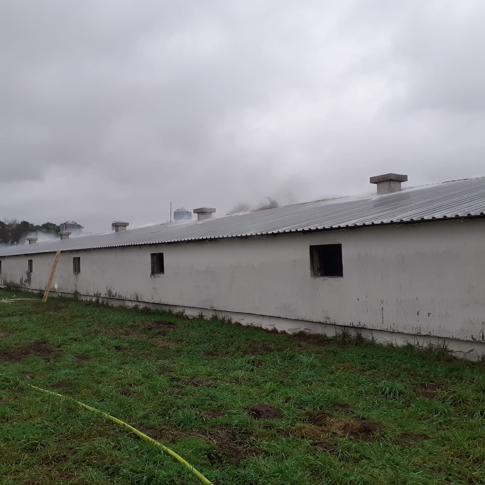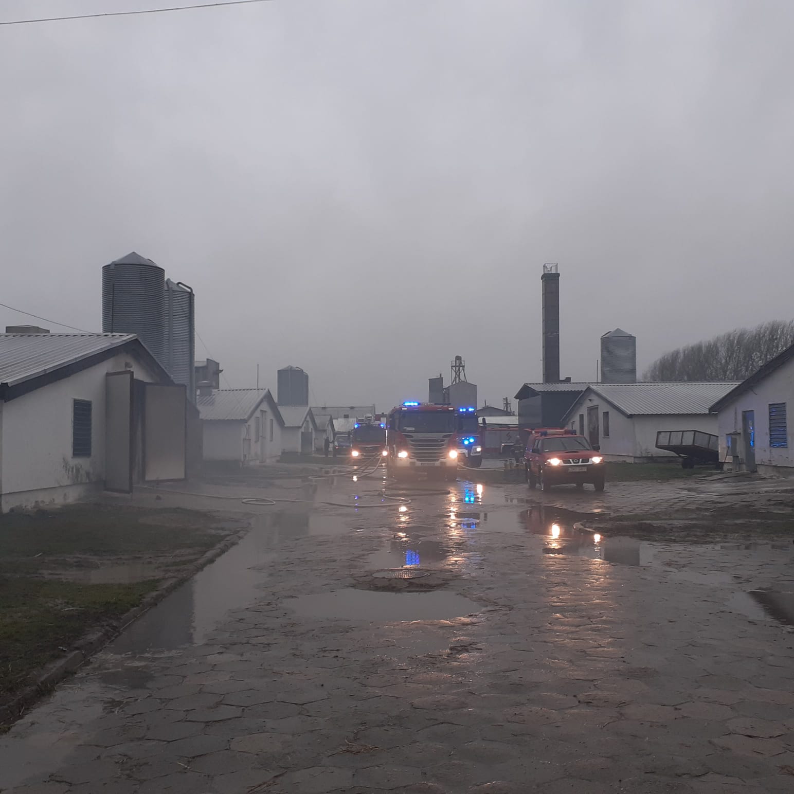 Pożaru budynku inwentarskiego przeznaczonego do hodowli drobiu na fermie w miejscowości Kruszwin.