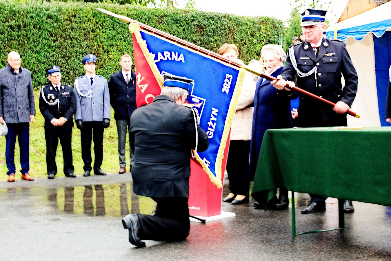 Przekazanie sztandaru jednostce Ochotniczej Straży Pożarnej w Giżynie