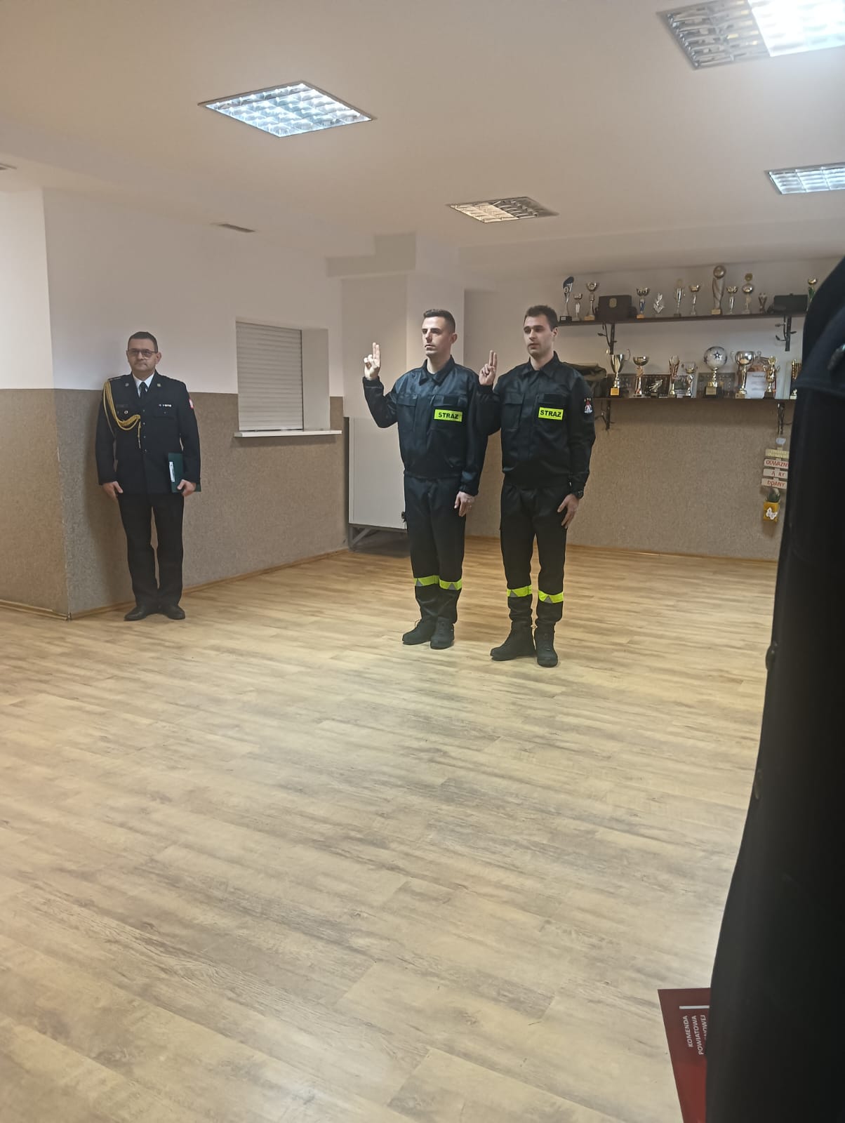 W poniedziałek 2 grudnia 2024 r. odbyła się uroczysta zbiórka z okazji ślubowania, które złożyli str. Borys Kurowiak oraz str. Adrian Łuczyszyn. Zostali oni przyjęci do służby przygotowawczej w Państwowej Straży Pożarnej. Ślubowanie przyjął Komendant Powiatowy PSP w Myśliborzu bryg. Grzegorz Gonera w obecności Zastępcy Komendanta Powiatowego PSP st. kpt. Mariusza Wolanickiego, strażaków