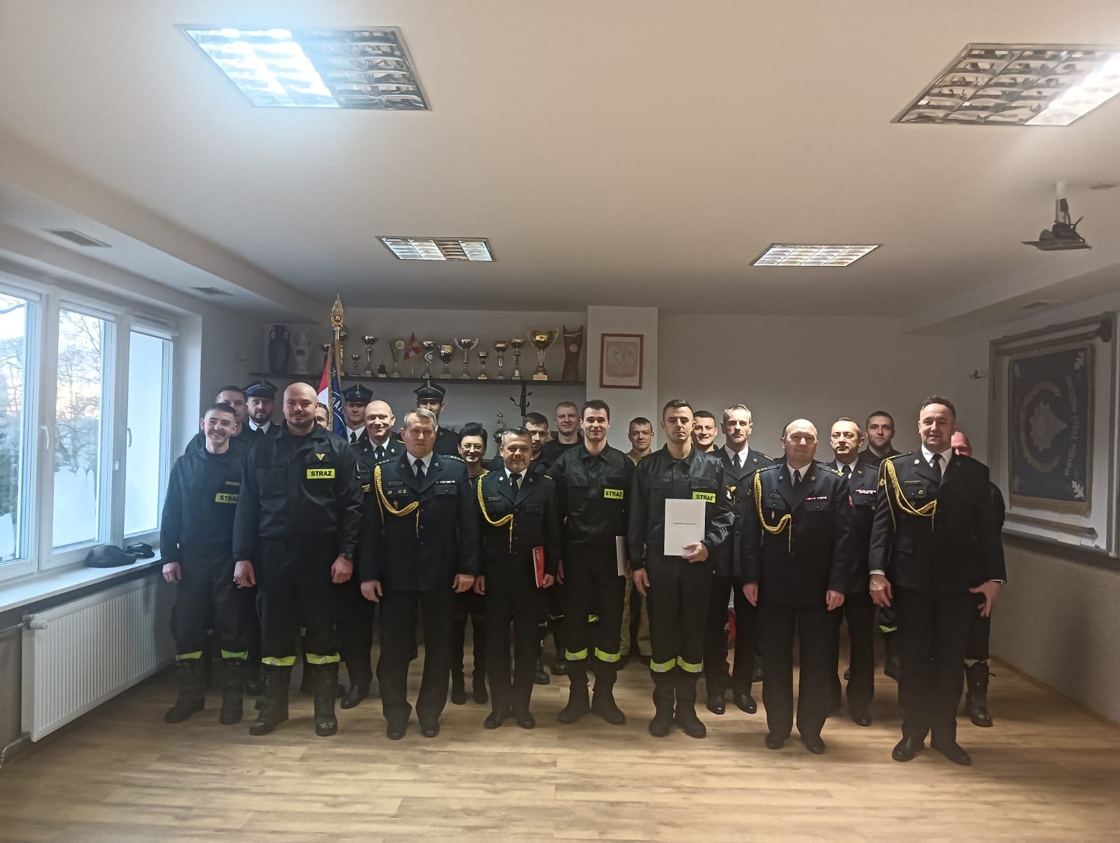 Podniosły charakter uroczystości był okazją do wręczenia listu gratulacyjnego od Komendanta Powiatowego PSP w Ostrowie Wielkopolskim dla mł. ogn. Dawida Jarosińskiego, który w dniu 16 listopada 2024 r, w czasie rodzinnego wyjazdu był świadkiem wypadku komunikacyjnego i udzielił pomocy osobie poszkodowanej. Wykazał się profesjonalizmem, sprawnym i konsekwentnym działaniem w ratowaniu życia ludzkiego. Taka postawa przyczynia się do kreowania pozytywnego wizerunku oraz prestiżu Państwowej Straży Pożarnej w odbiorze społecznym.