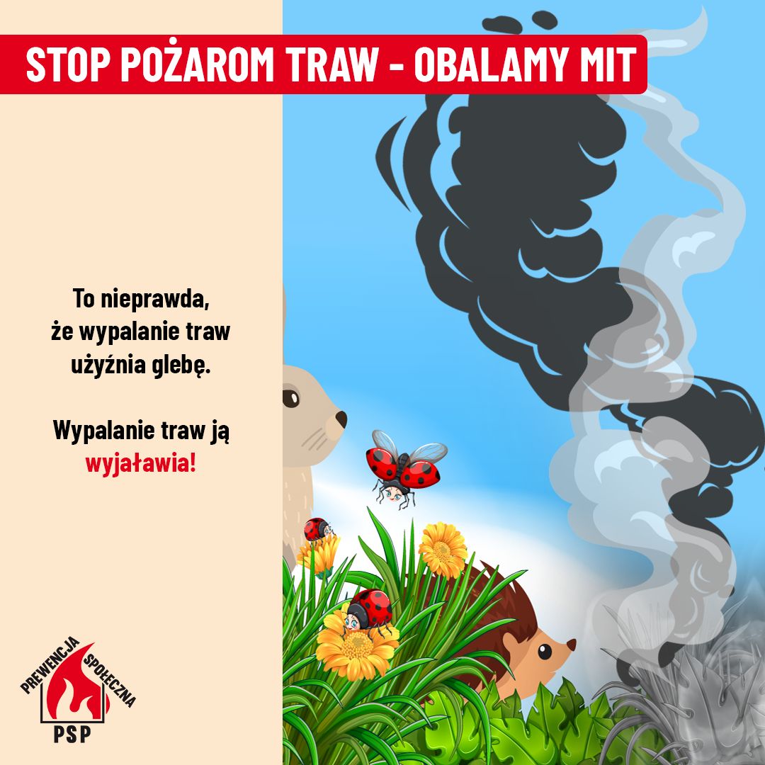 Przełom zimy i wiosny to okres, w których wyraźnie wzrasta liczba pożarów traw na łąkach i nieużytkach rolnych. Spowodowane jest to wypalaniem suchych traw i pozostałości roślinnych.
