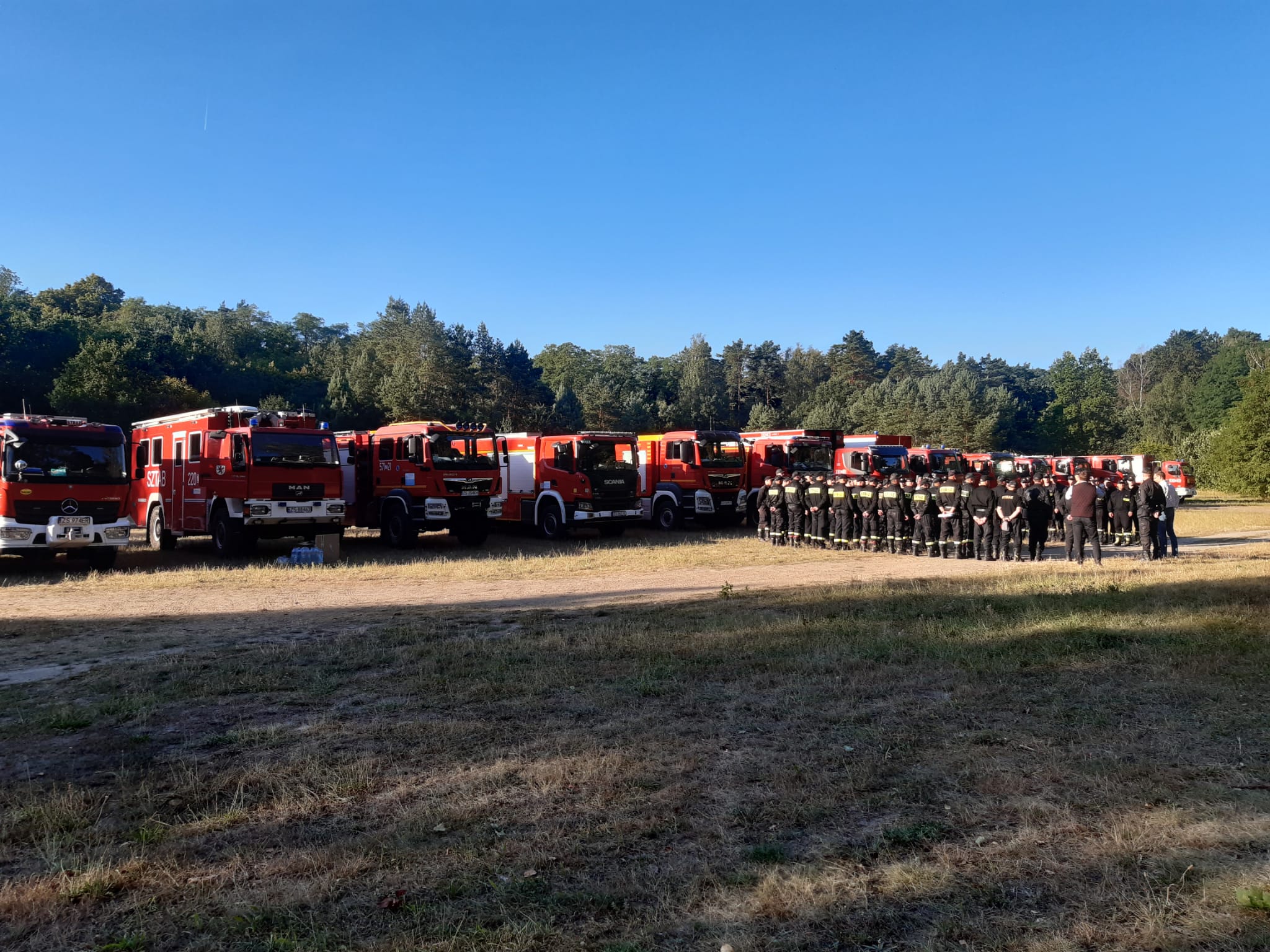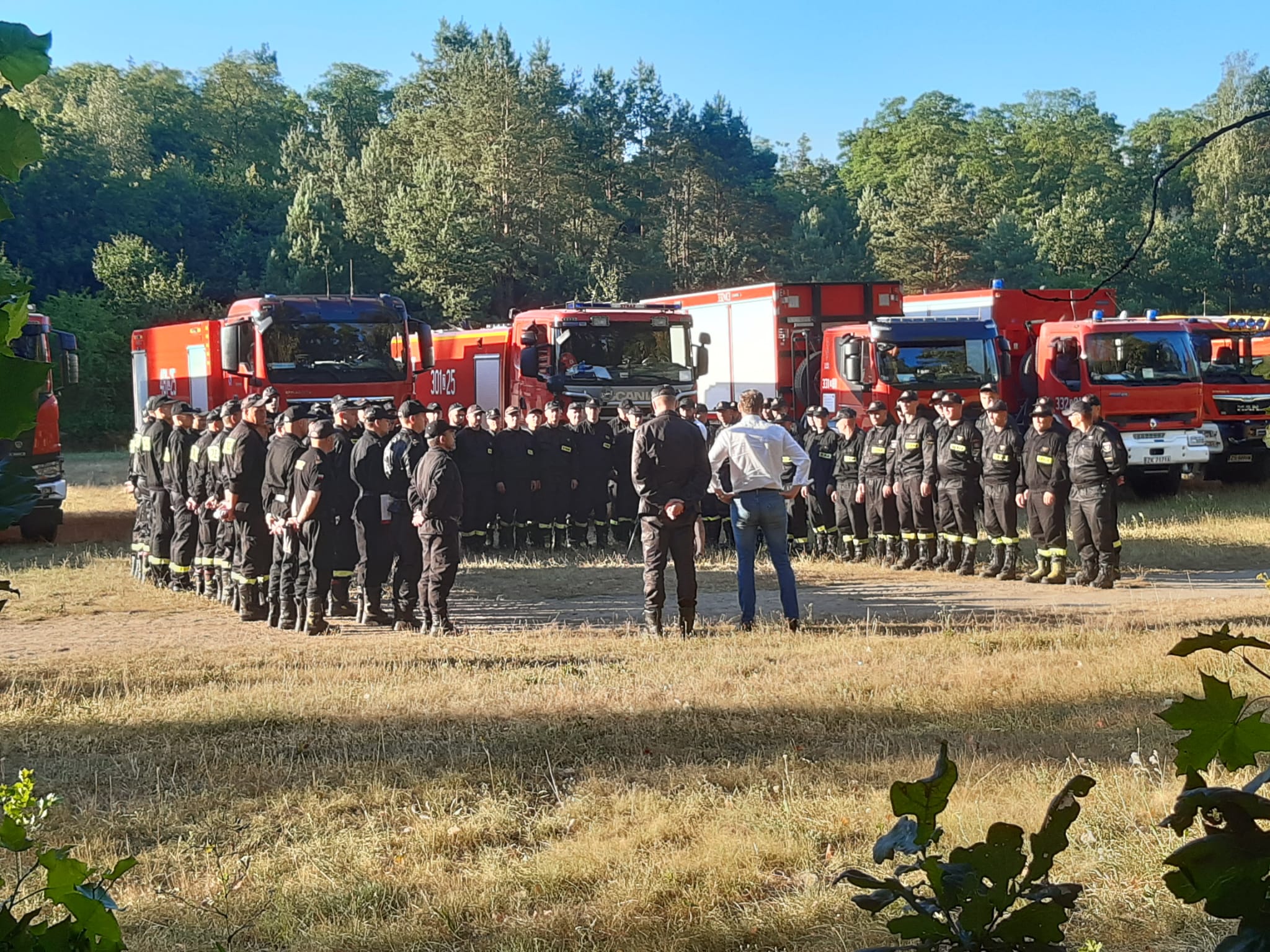 11 sierpnia 2022 r. przed godziną 8 strażacy z Komendy Powiatowej Państwowej Straży Pożarnej w Myśliborzu wyruszyli do Francji celem udzielenia wsparcia przy gaszeniu pożarów. W związku z pożarami lasów w części Francji otrzymano zapotrzebowanie na pomoc ratowniczą w postaci modułów GFFFV. GFFFV to angielski skrót, oznaczający Ground Forest Fire Fighting using Vehicles. Jest to moduł gaszenia pożarów lasów z ziemi z użyciem pojazdów. W ramach Mechanizmu Ochrony Ludności Unii Europejskiej Polska posiada sześć takich modułów, wyspecjalizowanych w gaszeniu pożarów lasów, które stacjonują w miastach: Kraków, Białystok, Poznań, Olsztyn, Szczecin i Wrocław. Z tych sześciu modułów, trzy są w stałej dyspozycji i w ciągu kilku godzin od zadysponowania mogą wyruszyć na zagraniczną misję. Każdy moduł jest samowystarczalny - poza typowym sprzętem gaśniczym, używanym przy pożarach lasów strażacy dysponują też zapleczem logistycznym: namiotami, centrum łączności i wszystkim, co potrzebne jest do rozbicia tymczasowej bazy strażaków w terenie. W odprawie uczestniczył Wojewoda Zachodniopomorski – Pan Zbigniew Bogucki oraz zastępca zachodniopomorskiego komendanta wojewódzkiego PSP st. bryg. Kazimierz Lesisz. Moduł zachodniopomorski wyjechał z Komendy Powiatowej PSP w Myśliborzu i udał się do Wrocławia, gdzie nastąpi koncentracja sił i środków.