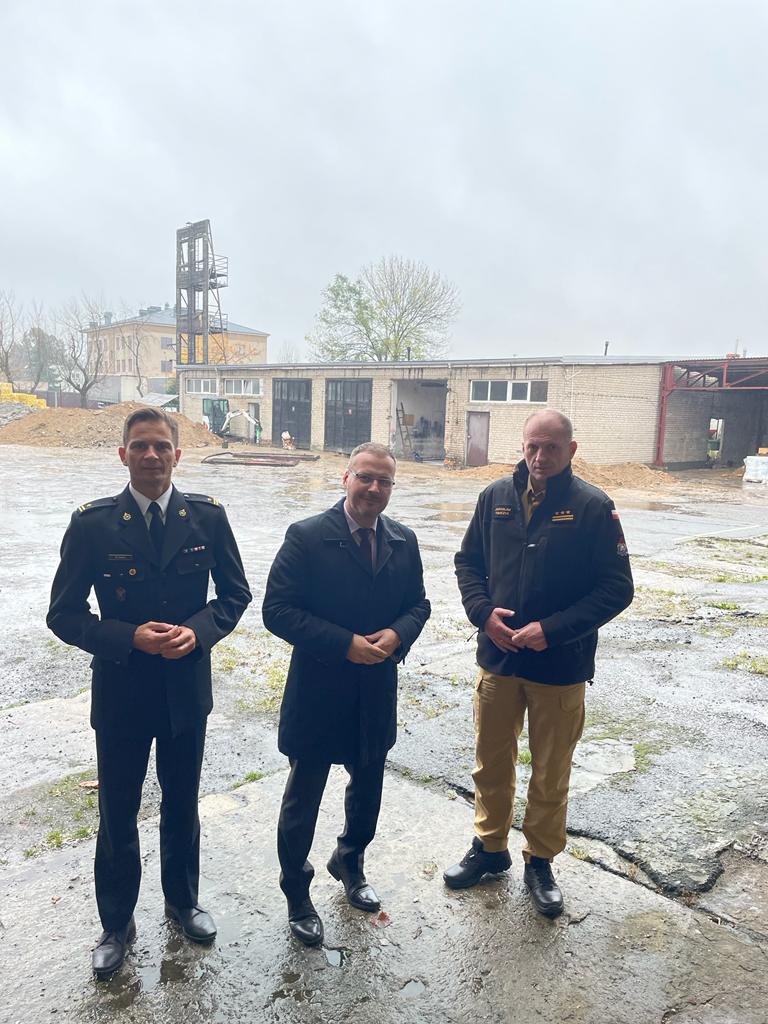 Podczas wizytacji Komendant Powiatowy PSP w Myśliborzu - mł. bryg. Maciej Iwko omówił i przedstawił stan zaawansowania robót budowlanych związanych z "Termomodernizacją Budynków Użyteczności Publicznej Komendy Powiatowej PSP w Myśliborzu oraz Jednostki Ratowniczo-Gaśniczej PSP w Myśliborzu i Posterunku JRG PSP w Dębnie"