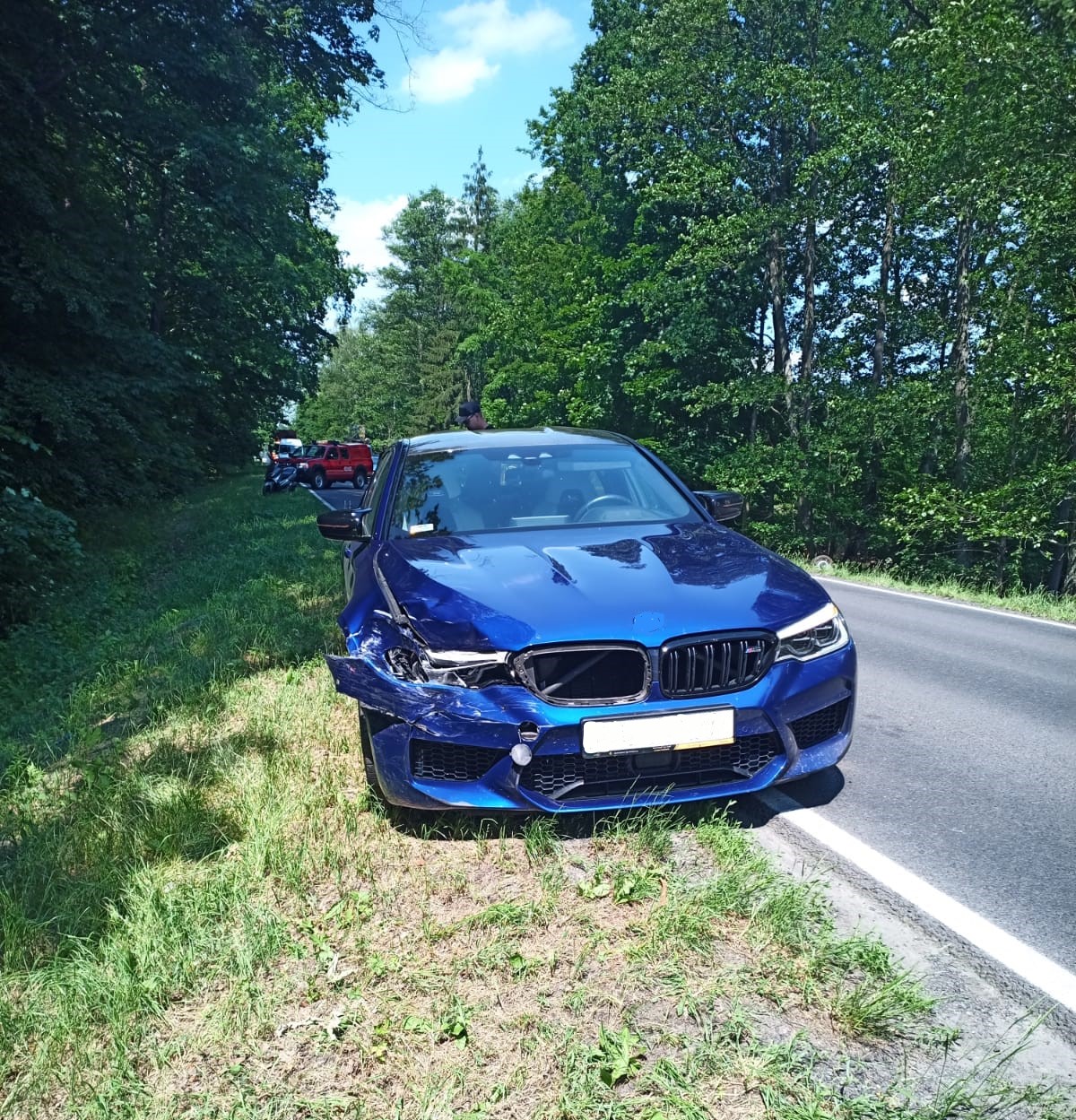 17.06.2021 o godz. 12:52 Stanowisko Kierowania Komendanta Powiatowego PSP w Mysliborzu przyjęło zgłoszenie o wypadku na drodze krajowej nr 23, w którym uczestniczyły: samochód typu bus oraz samochód osobowy. Dyżurny SK KP PSP niezwłocznie zadysponował jednostki ochrony przeciwpożarowej w sile 4 zastępów. Na miejscu okazało się, że w wyniku wypadku samochód typu bus znajdował się w rowie natomiast samochód osobowy na jezdni. W pojazdach podróżowały 2 osoby, a jedna z nich została poszkodowana. Na miejsce dotarł także śmiglowiec LPR, który przetransportował poszkodowaną osobę do szpitala. Działania strażaków polegały na zabepieczeniu miejsca zdarzenia oraz na wsparciu PRM w udzieleniu pomocy poszkodowanemu.