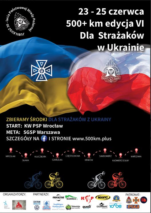 Charytatywny ultramaraton kolarski "500km+ dla strażaków z Ukrainy" - 23 do 25 czerwca 2022 r.