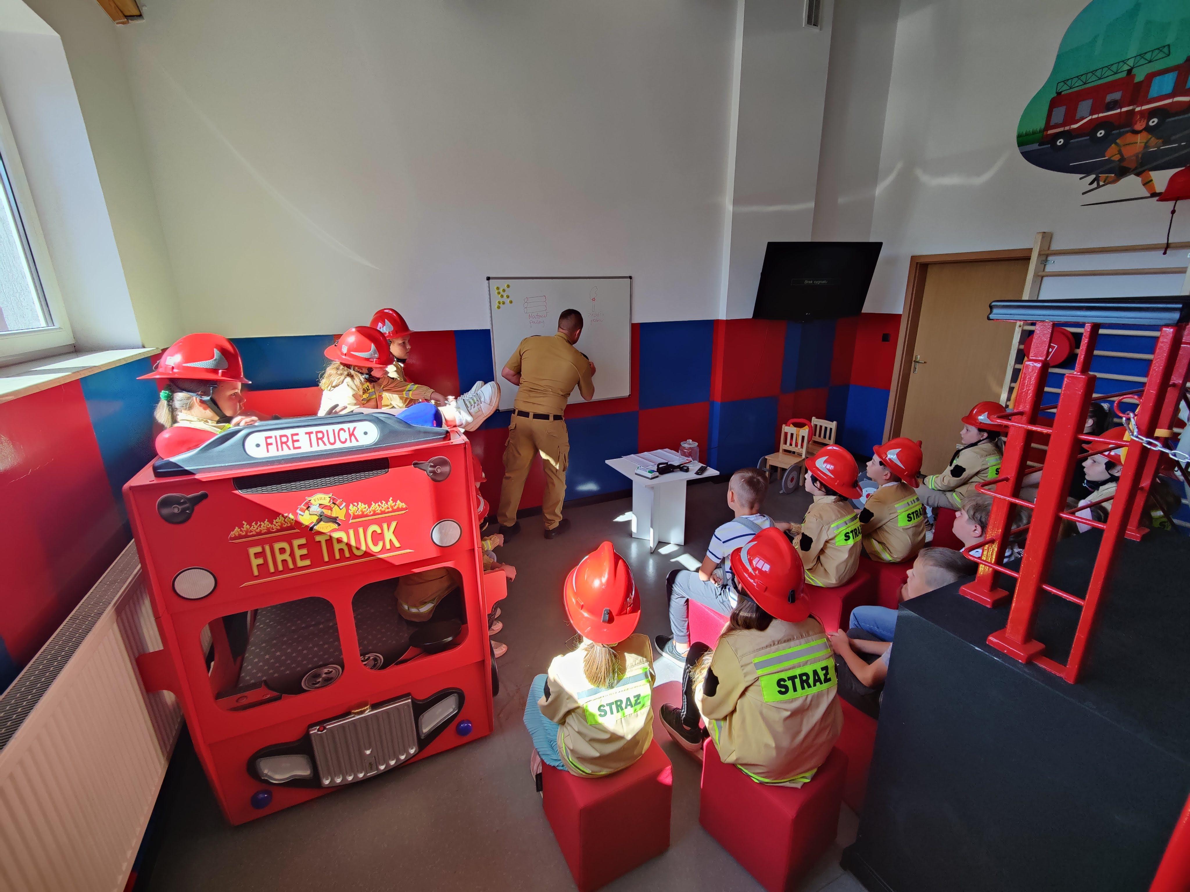 W dniu 15.05.2024r. Komenda Powiatowa Państwowej Straży Pożarnej w Myszkowie zorganizowała pierwsze praktyczne zajęcia w salce edukacyjnej pn. „Akademia Małego Strażaka”.