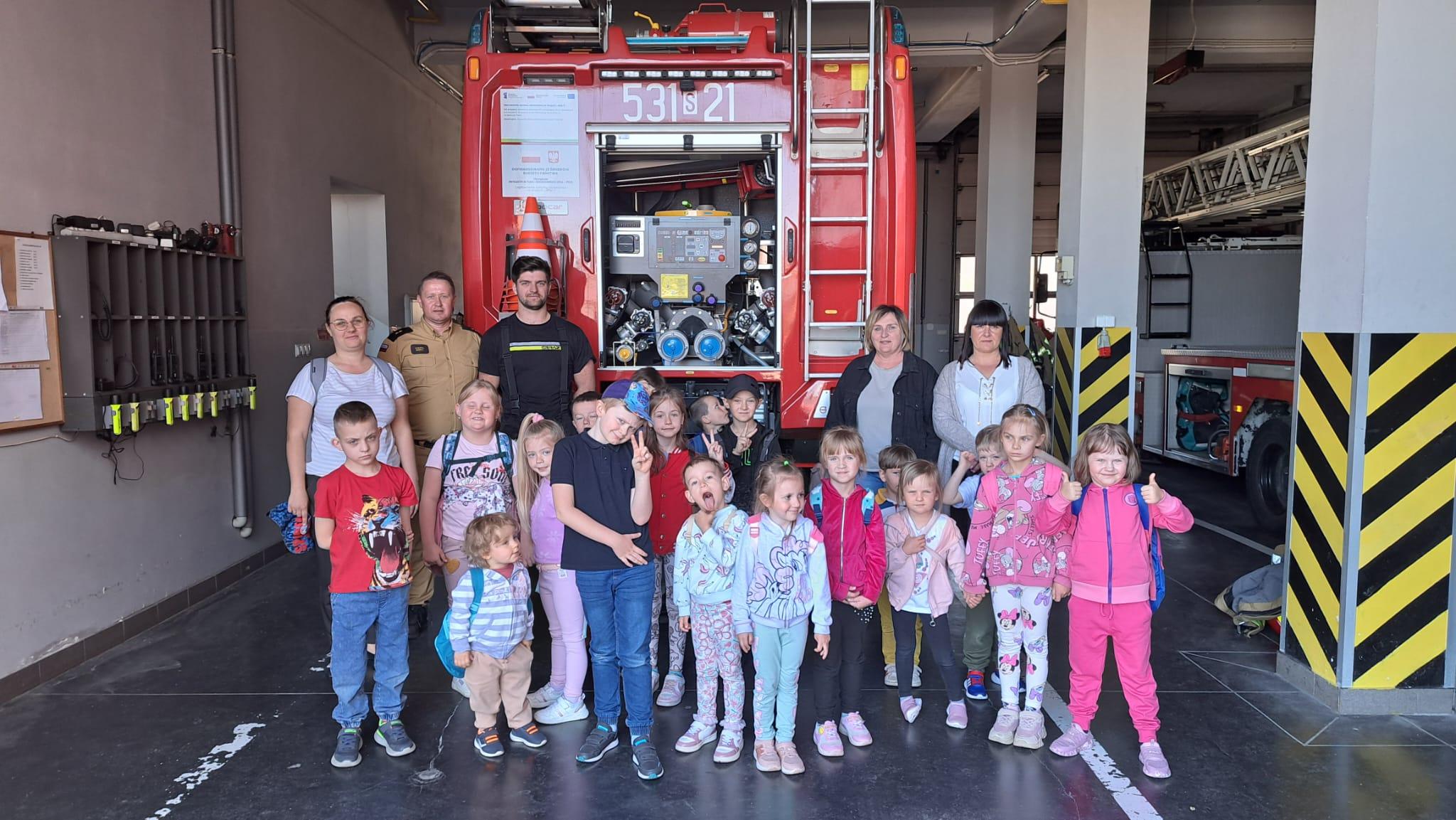 Dzieci oraz opiekunów ze szkoły podstawowej w Gniazdowie przywitali Komendanci Komendy Powiatowej PSP w Myszkowie. Zajęcia teoretyczne i praktyczne prowadzili funkcjonariusze KP PSP w Myszkowie.