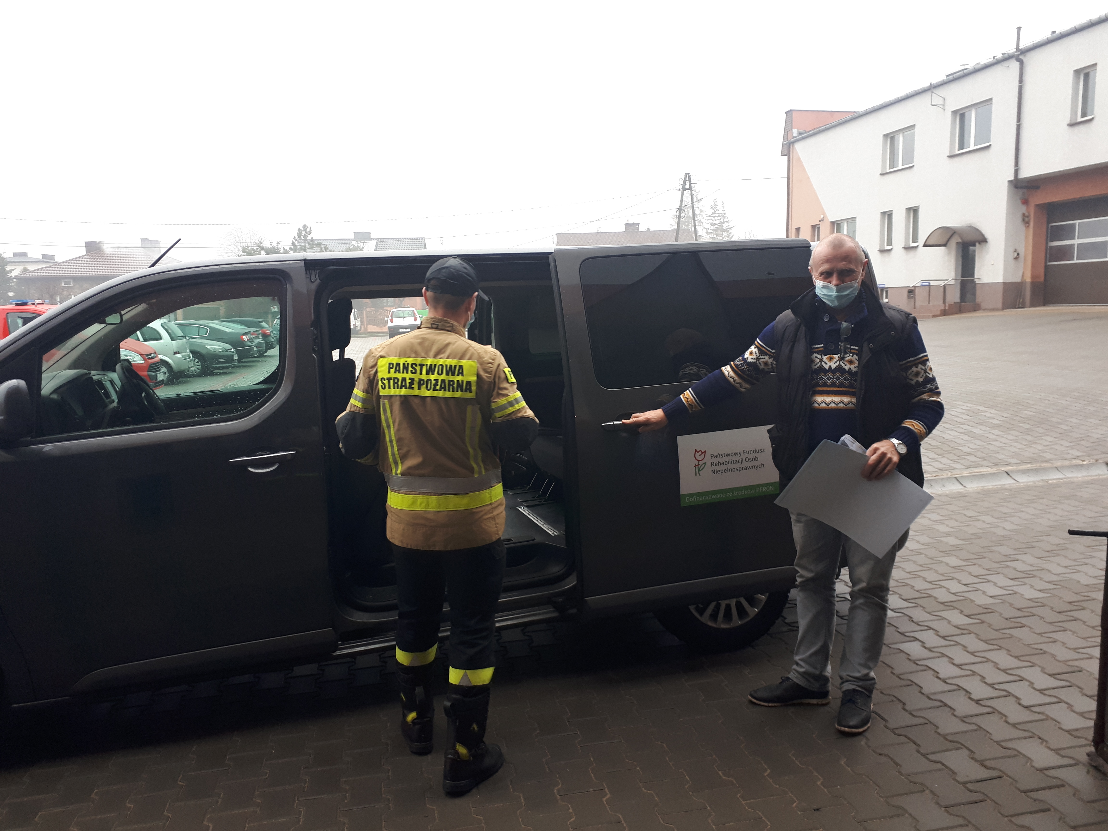Pomoc myszkowskich strażaków w dystrybucji ochronnych maseczek medycznych