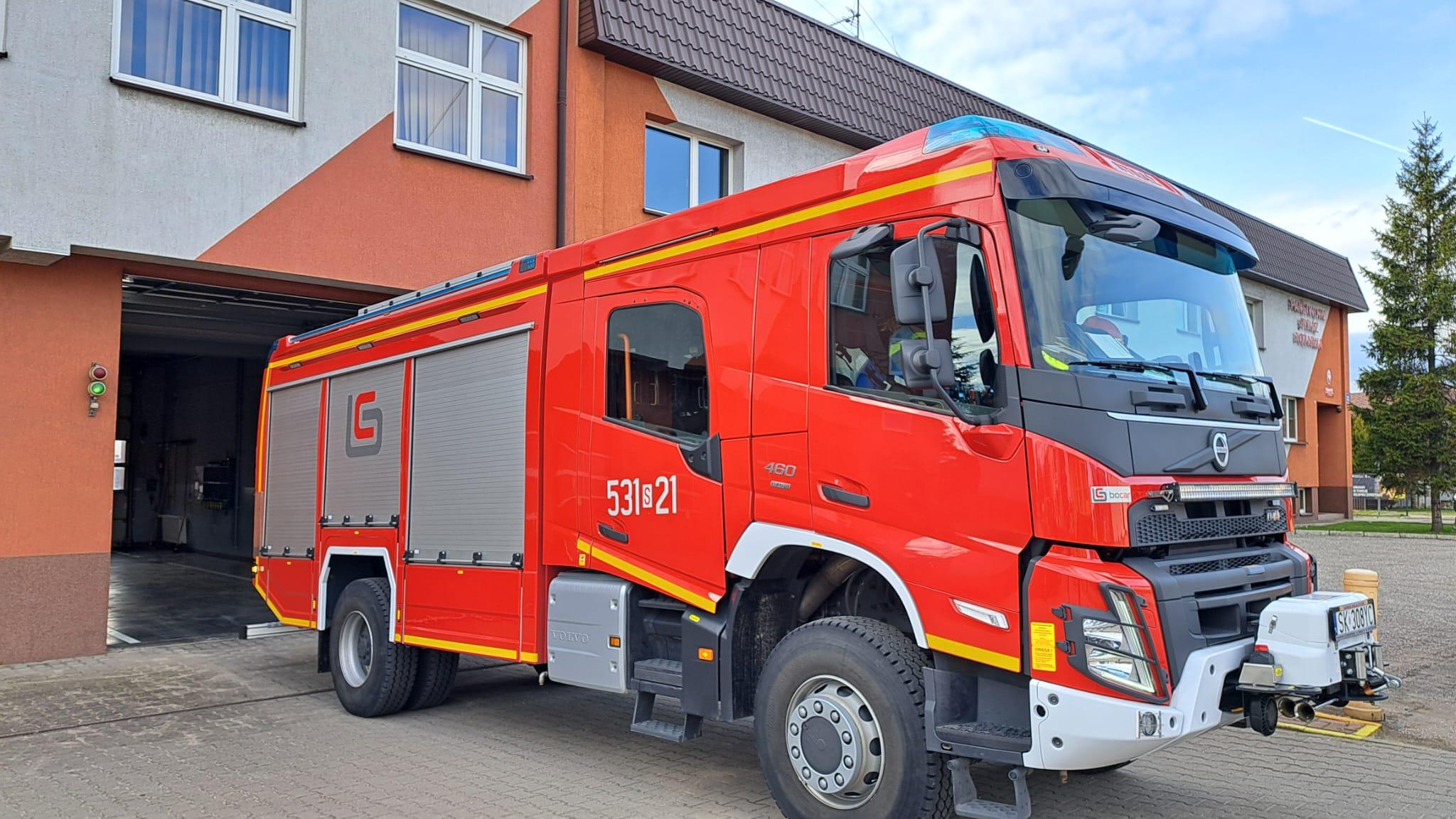 Volvo to ciężki samochód ratowniczo - gaśniczy o napędzie uterenowionym wyposażony w zbiornik wody o pojemności 4100l i zbiornik środka pianotwórczego o pojemności 410l, a także autopompę o wydajności 3200l/min. Jest to nasz „pierwszy wyjazd”, czyli samochód który dysponowany jest jako pierwszy do większości zdarzeń na terenie miasta i powiatu. W związku z tym jest wyposażony uniwersalnie – w taki sposób, aby w zakresie podstawowym, zastęp mógł poradzić sobie z każdym zagrożeniem.